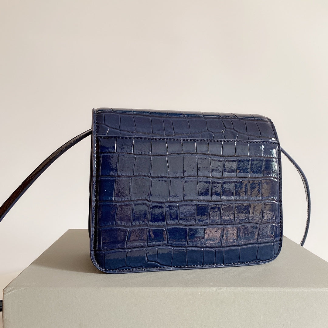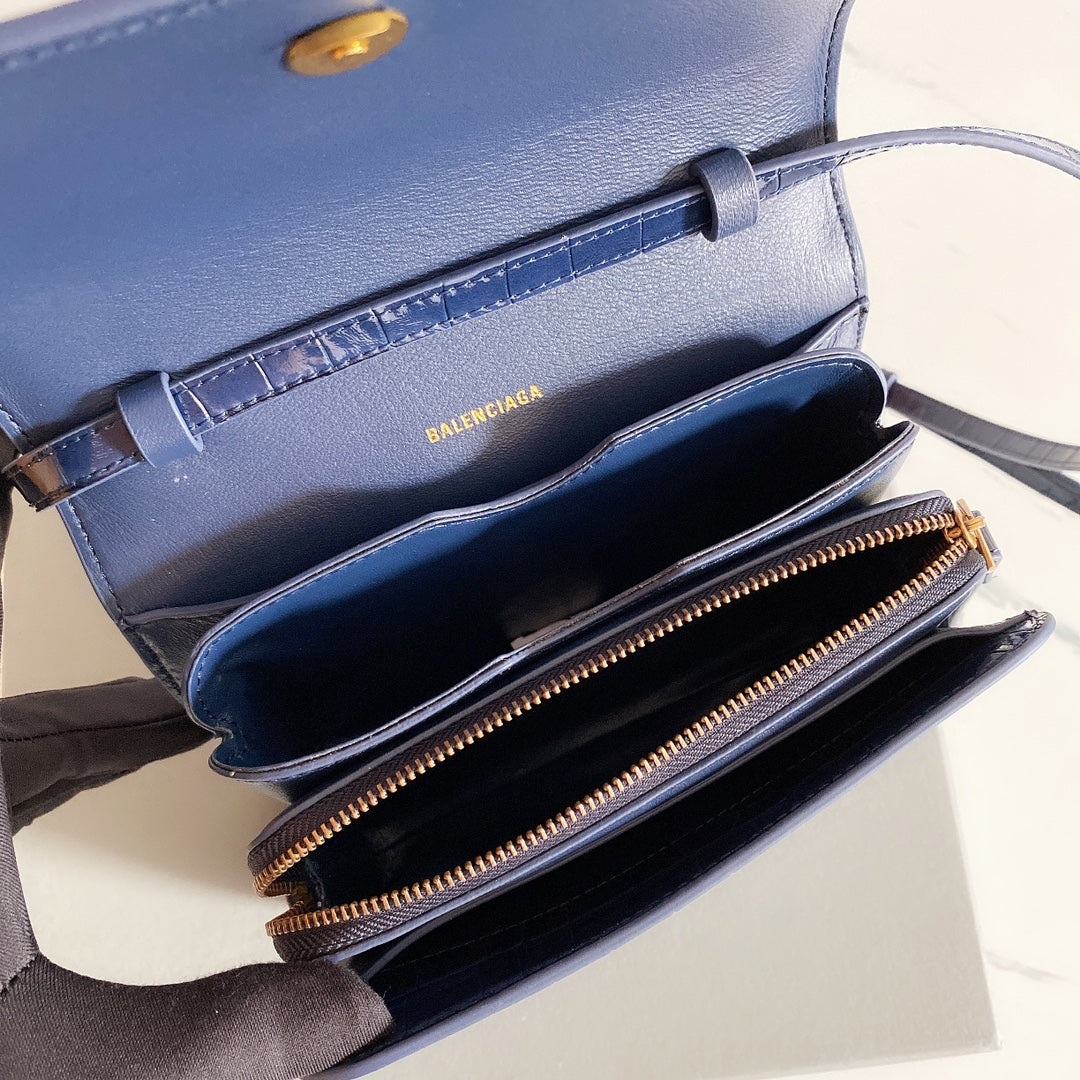 Balenciaga Crocodile Embossed Blue Box Shoulder Bag