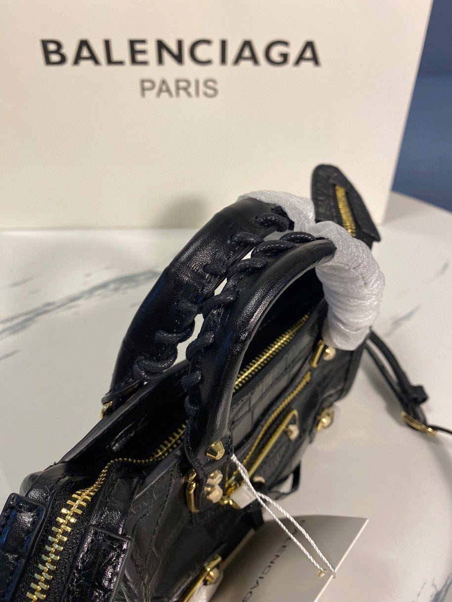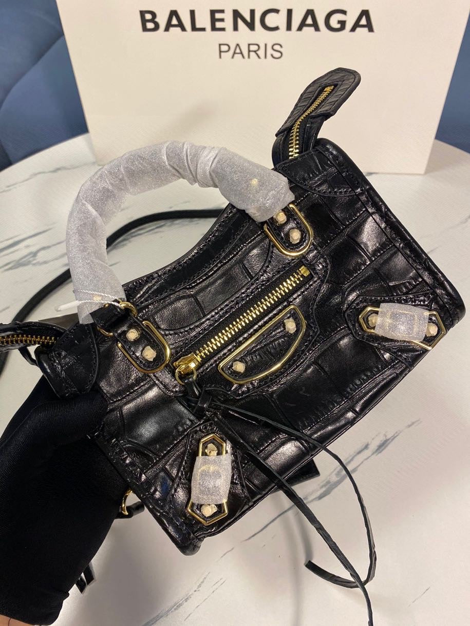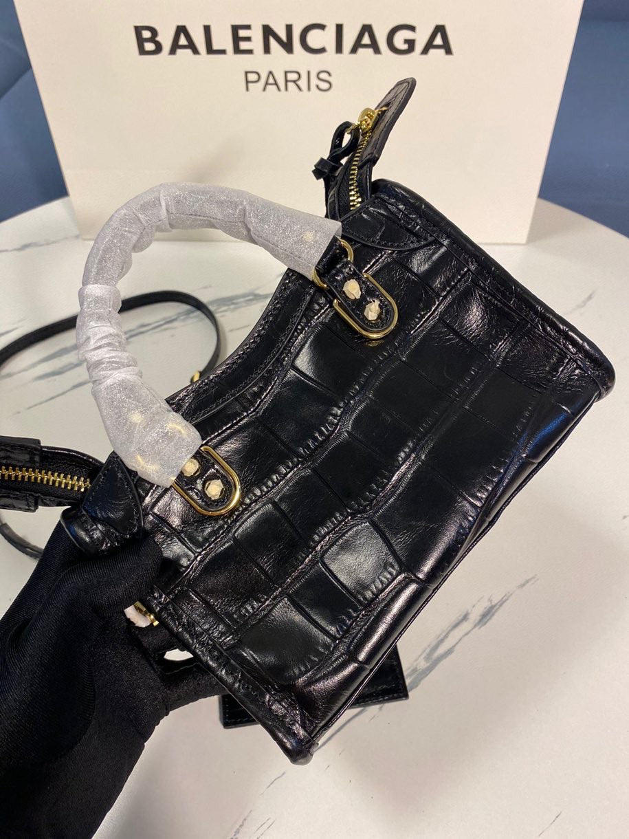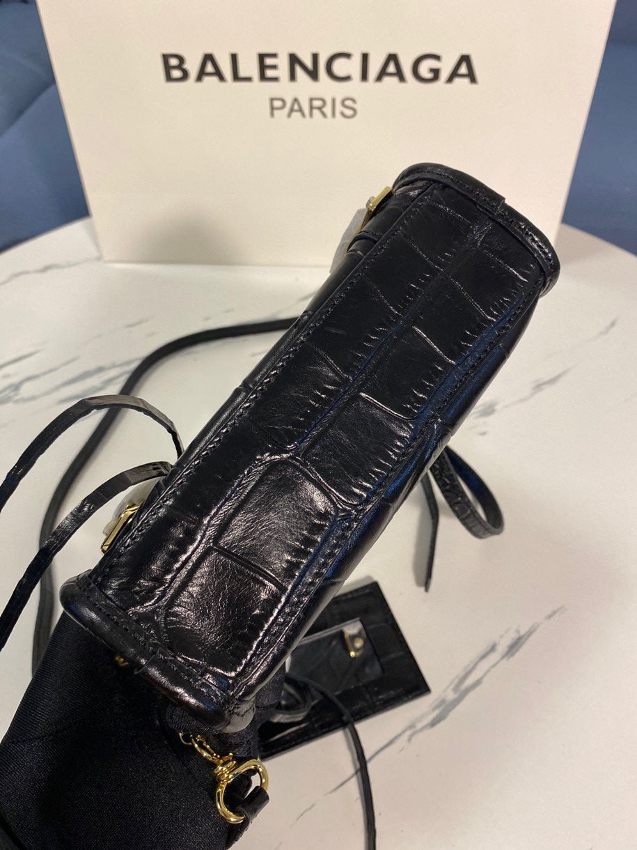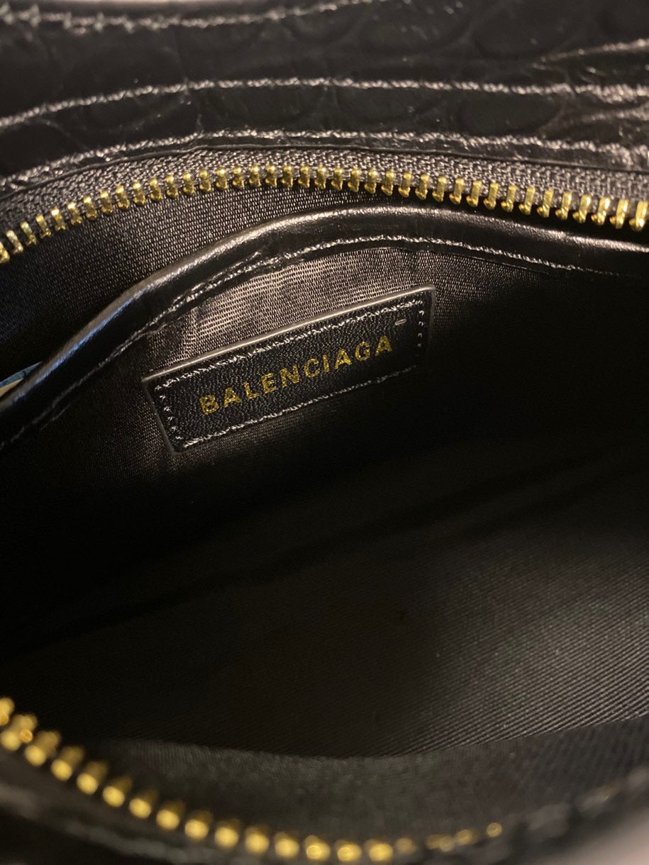 Balenciaga Crocodile Pattern Motorcycle Bag – Luxury Black Calfskin