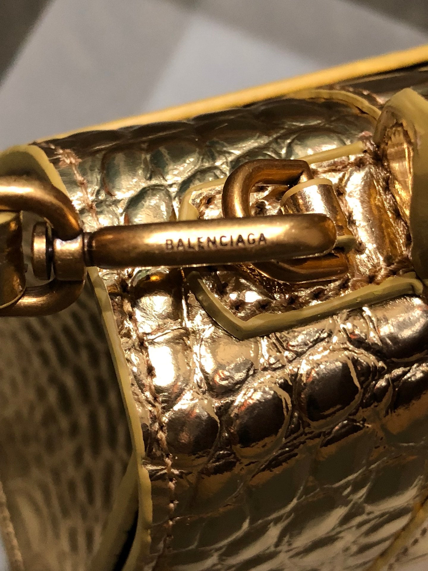 Balenciaga Hourglass Crocodile Bag with Golden Buckle