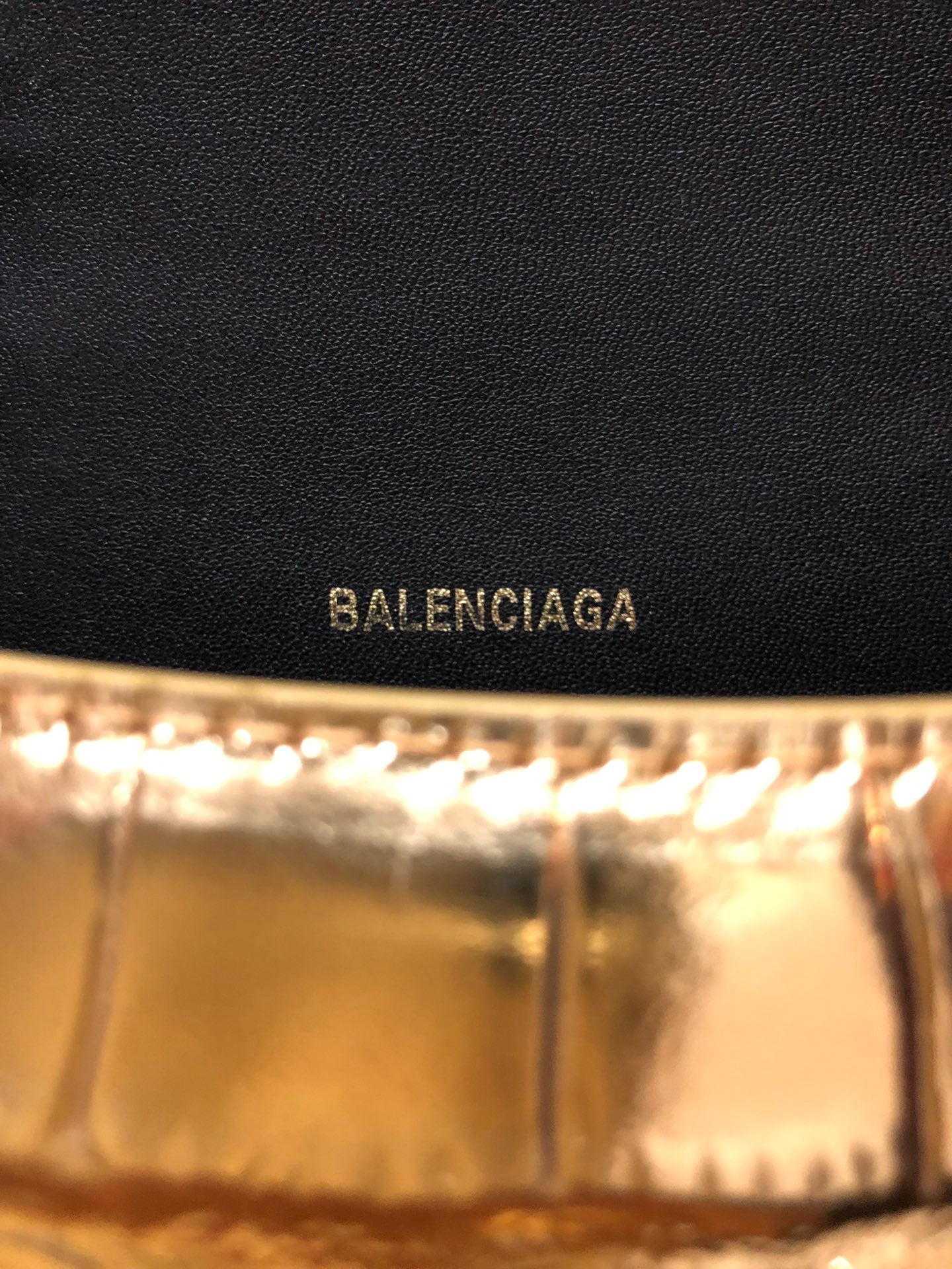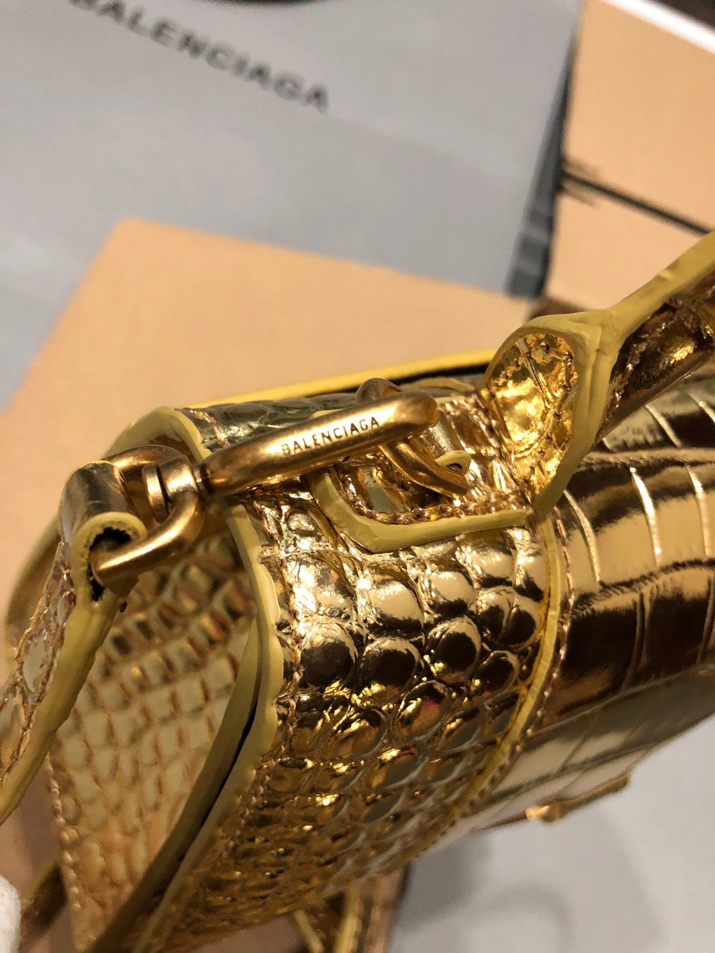 Balenciaga Hourglass Crocodile-Effect Handbag with Golden Buckle