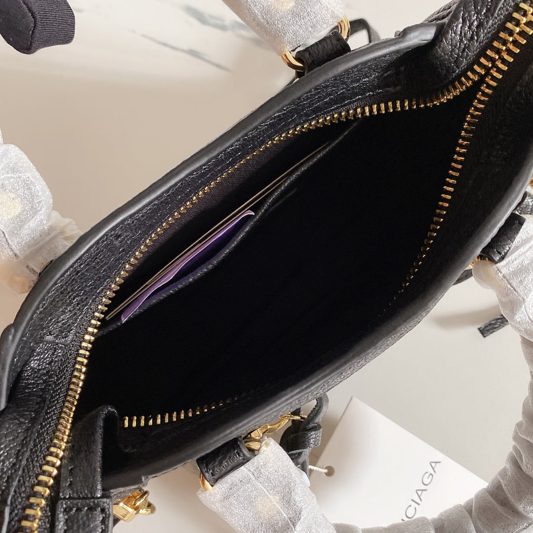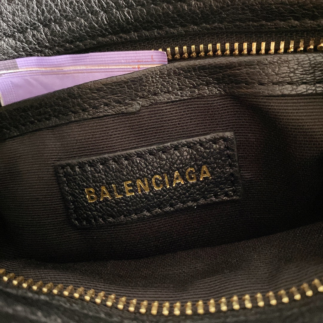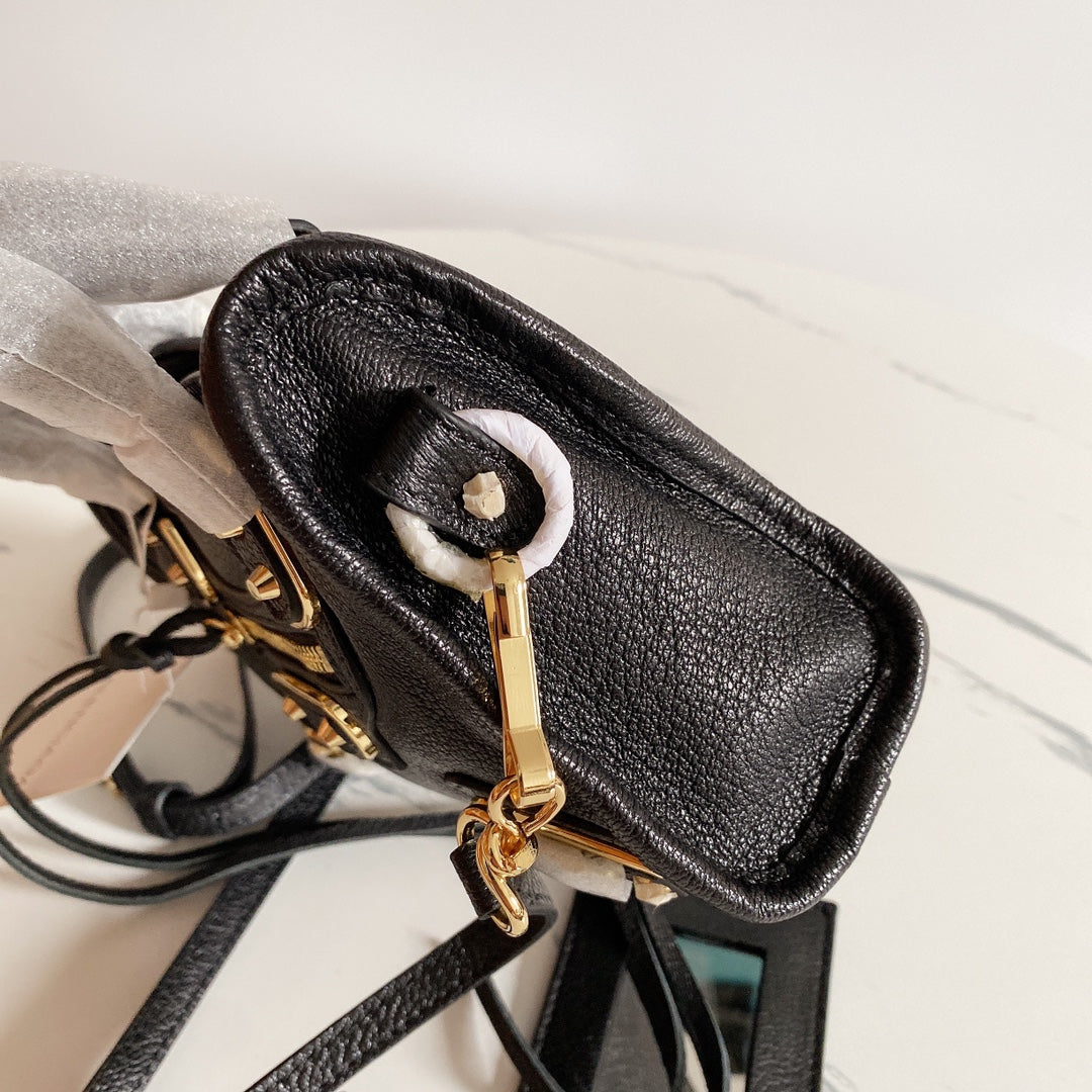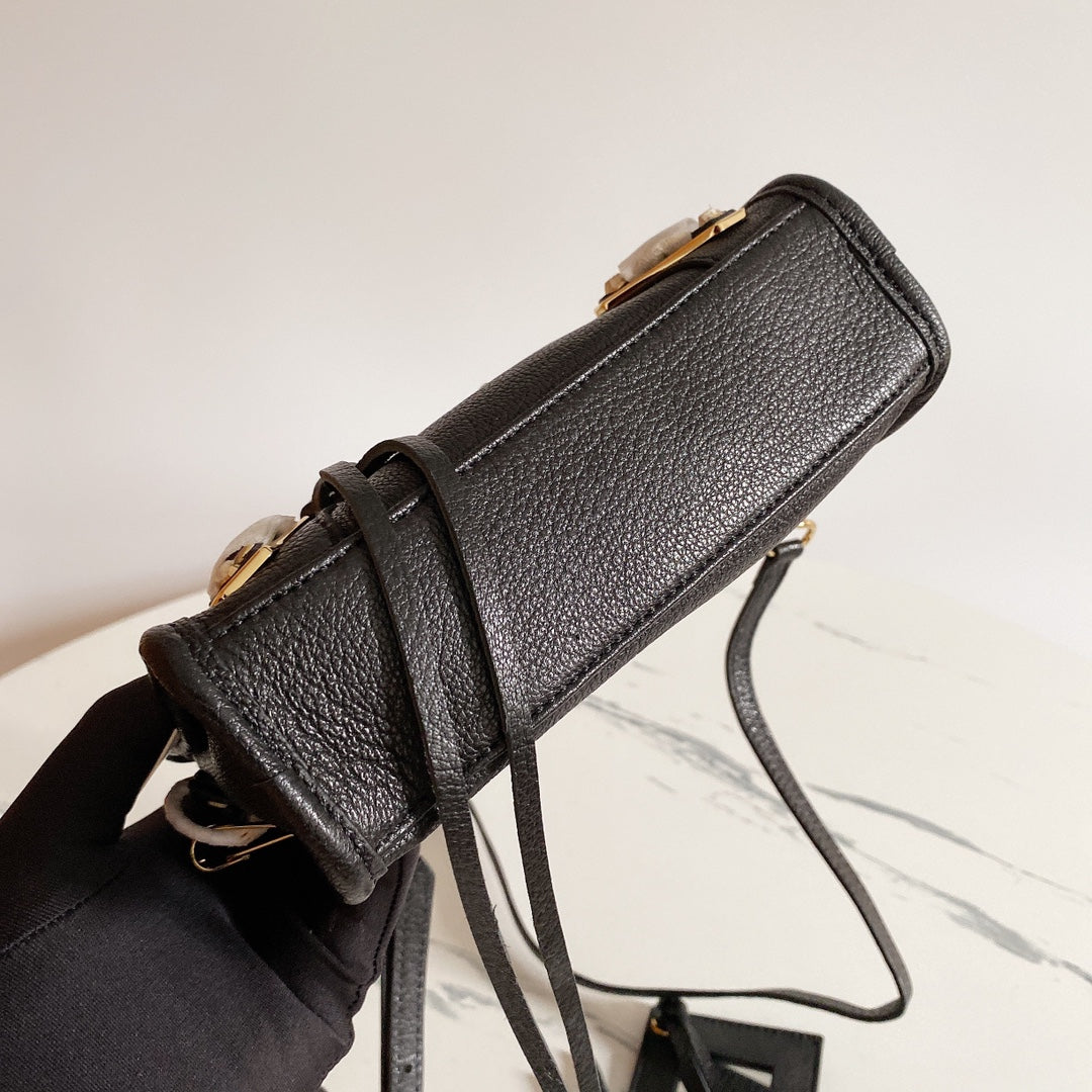 Elevate your style with this exquisite Balenciaga-inspired motorcycle bag, crafted from premium goatskin leather imported from Italy. Featuring a stunning black and gold buckle design, this bag embodies high-end elegance and sophistication.