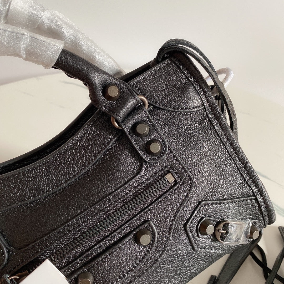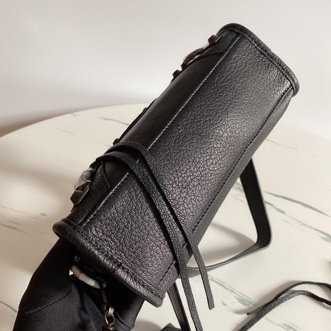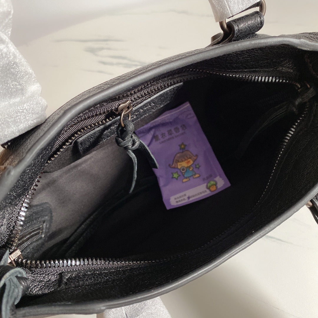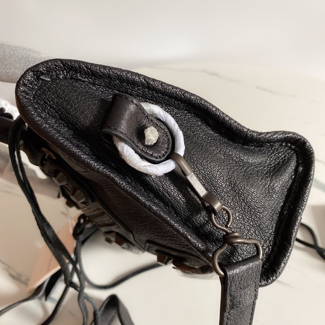 Introducing the Balenciaga Liusu Style Motorcycle Bag, a premium accessory crafted from high-quality imported goatskin. Designed for both fashion and functionality, this sleek bag features subtle black nail accents that enhance its timeless appeal.