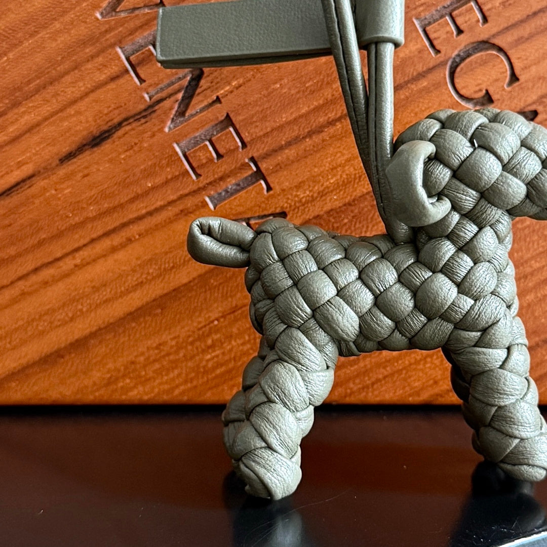 Discover the Bottega Veneta 2025 Braided Puppy Pendant, a charming accessory that adds a touch of whimsy to any handbag. Expertly crafted from high-quality leather, this adorable puppy-shaped pendant is both delicate and colorful, making it the perfect statement piece. Versatile and playful, it can be hung on your favorite bag or used as a keychain. Elevate your style with this irresistible charm. Style number: 807068.