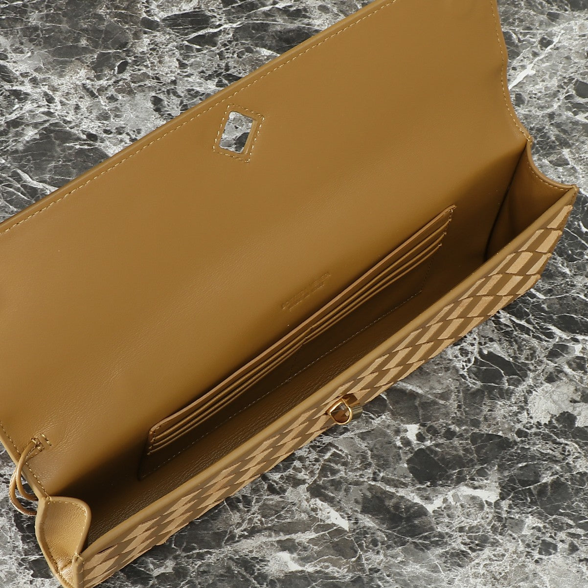 Featuring a simple yet elegant structure, the Andiamo bag showcases smooth lines and a tubular braided brass Muse metal knot clasp, merging exquisite jewelry craftsmanship with timeless elegance. With dimensions of 31cm x 13cm x 3cm, this compact bag is perfect for carrying your essentials while making a bold statement. Discover the refined allure of the Andiamo—your new go-to accessory for evening events.