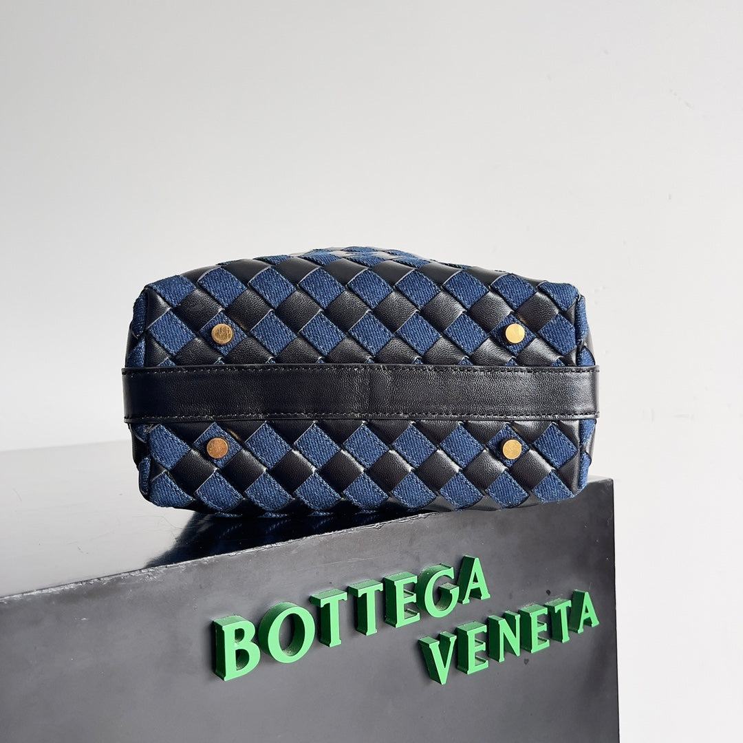 Introducing the Bottega Veneta Wallace Tote, a striking fusion of classic retro denim and luxurious soft leather. This stylish accessory embodies a unique blend of textures and colors, showcasing individual personality while maintaining a casual, laid-back vibe. Designed for practicality, the spacious interior (22*13*9cm) allows you to effortlessly carry your essentials, making it perfect for summer outings when freeing your hands is a must. Elevate your fashion game with a piece that defines innovation and timeless elegance.
