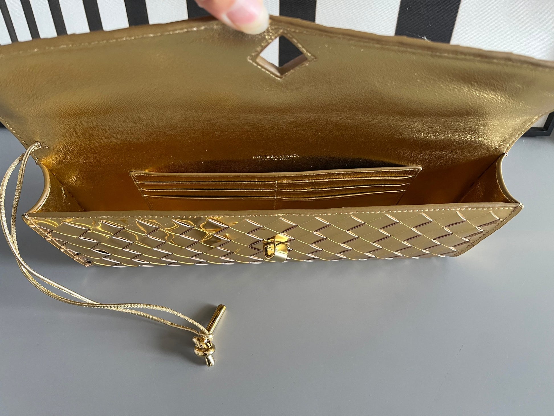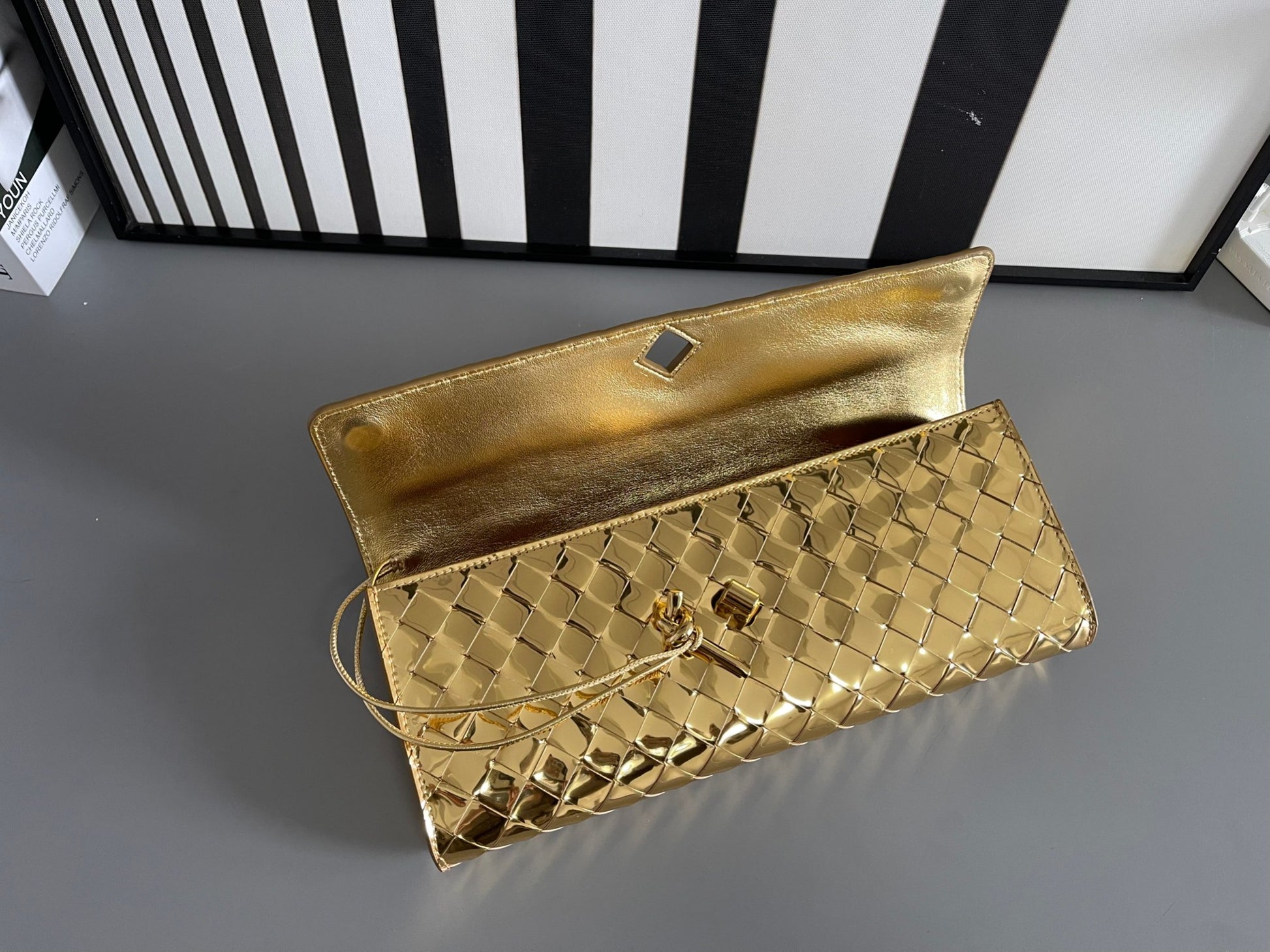 Bv Clutch Luxury Woven Sheepskin Long Clutch Bag
