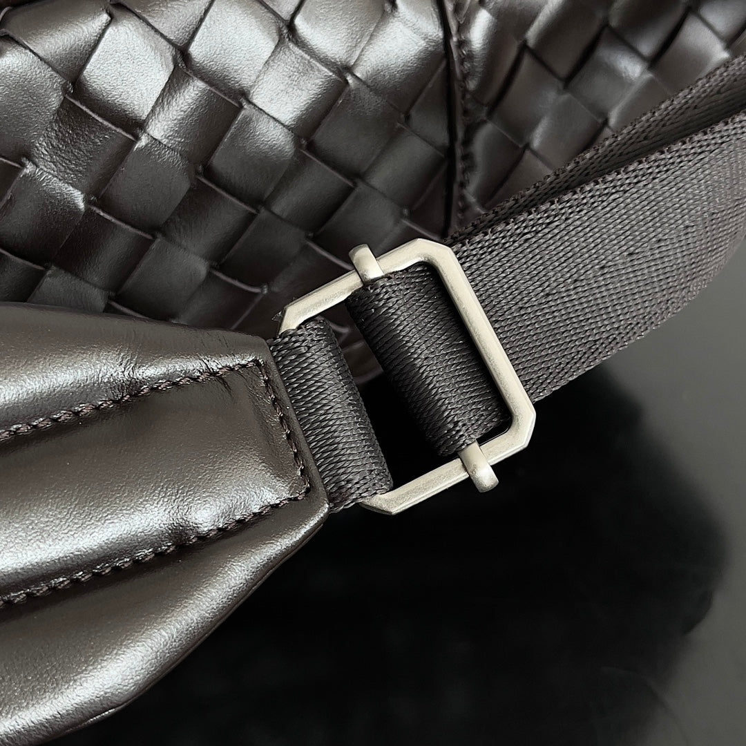 Discover the BV Woven Leather Backpack, a perfect blend of elegance and functionality. This spacious backpack is crafted from premium, soft Italian calfskin using a unique weaving process, ensuring both durability and style.