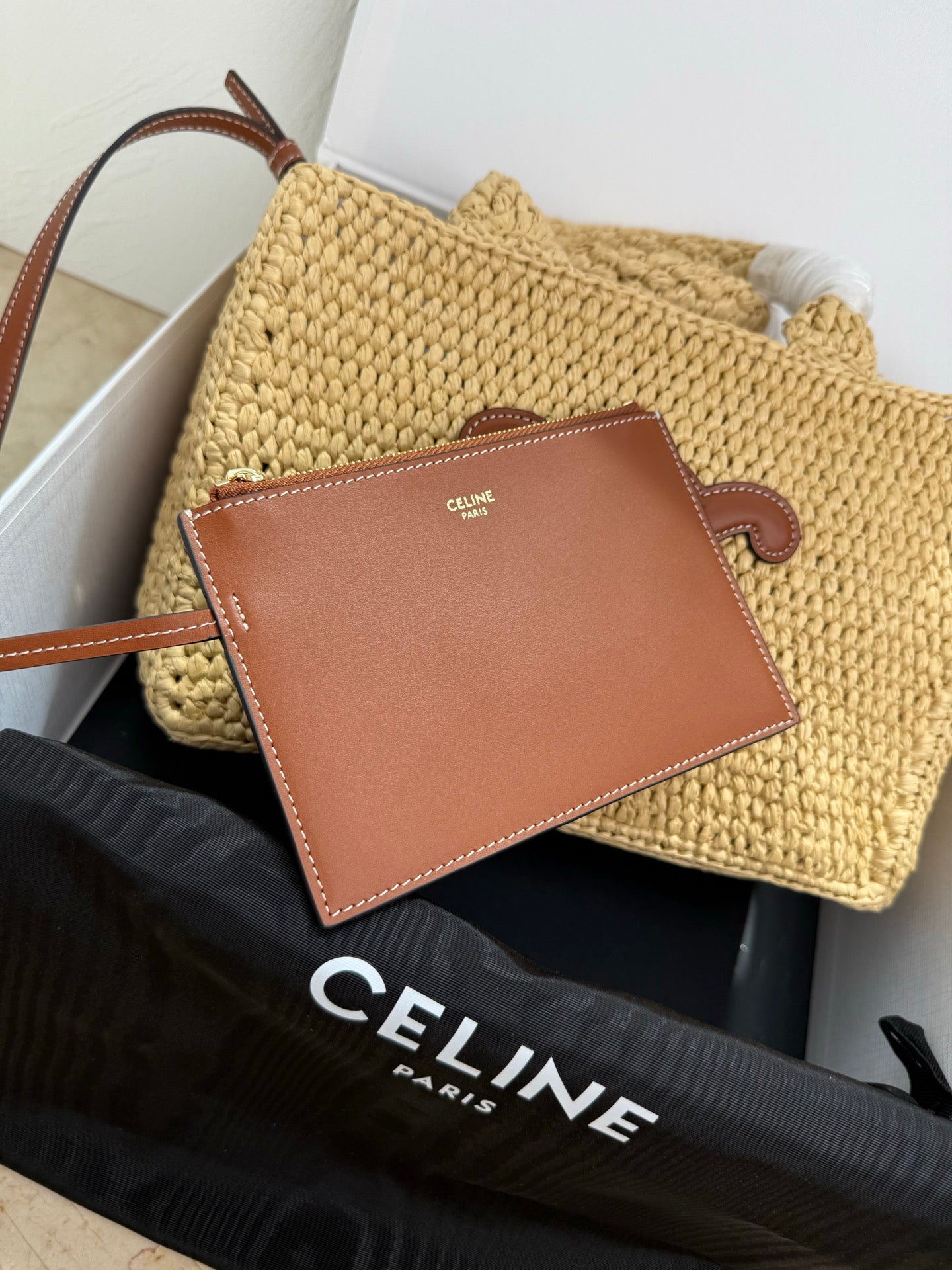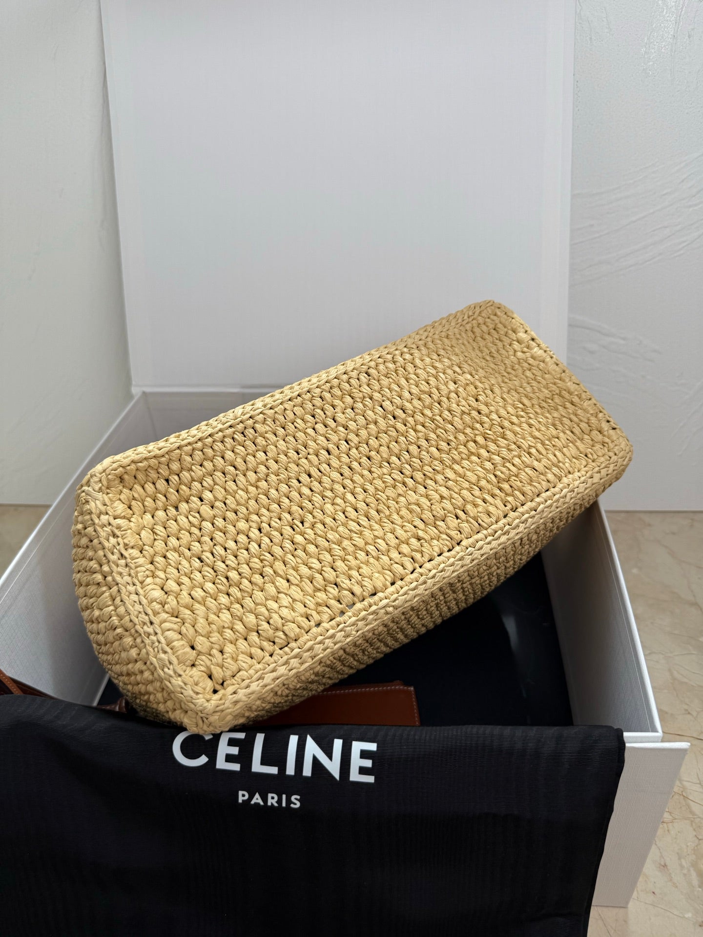 Celine TCABAS THAIS Small Leather and Straw Tote Bag