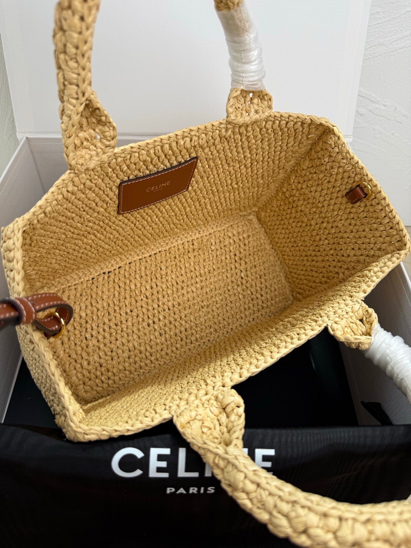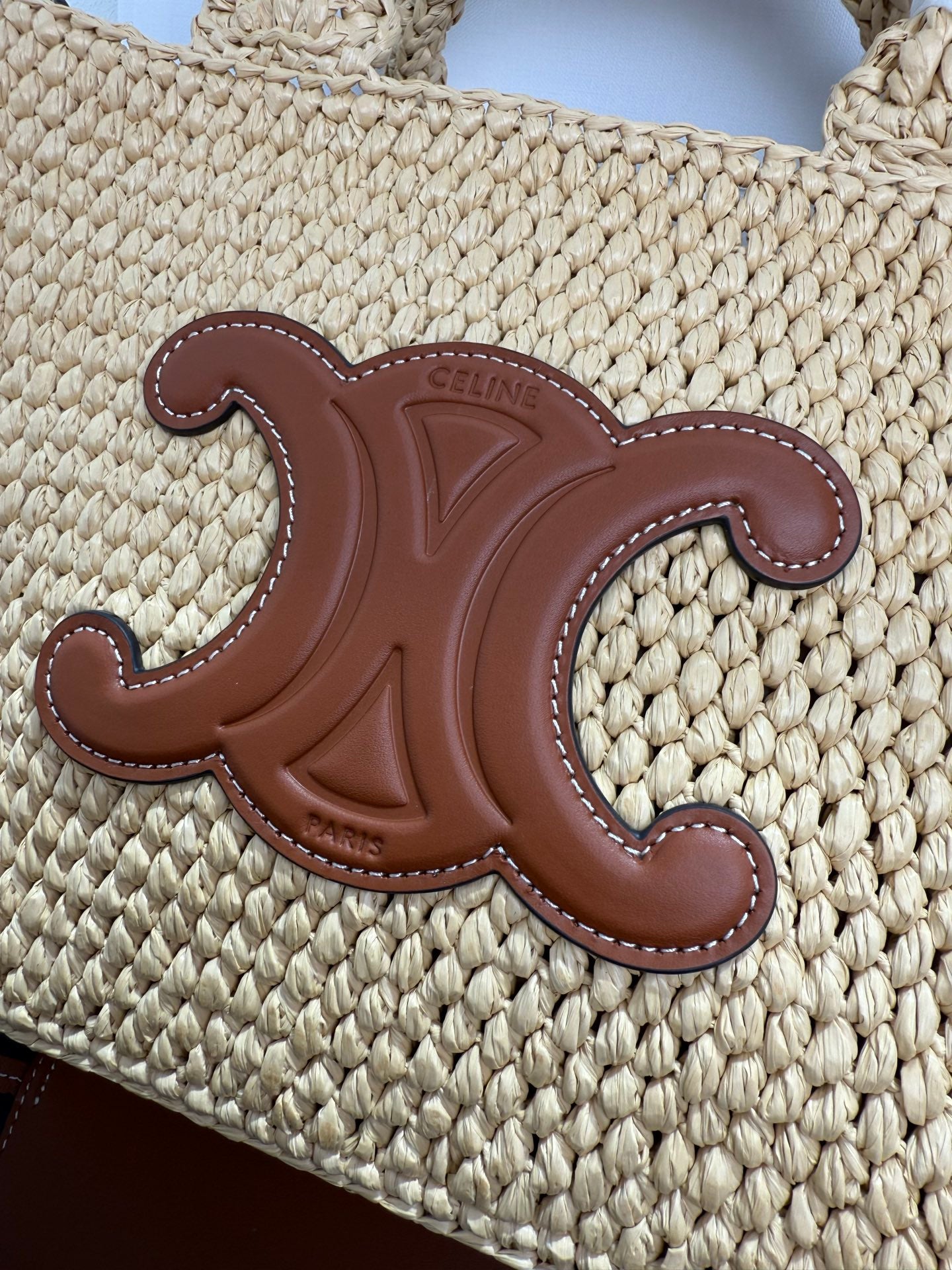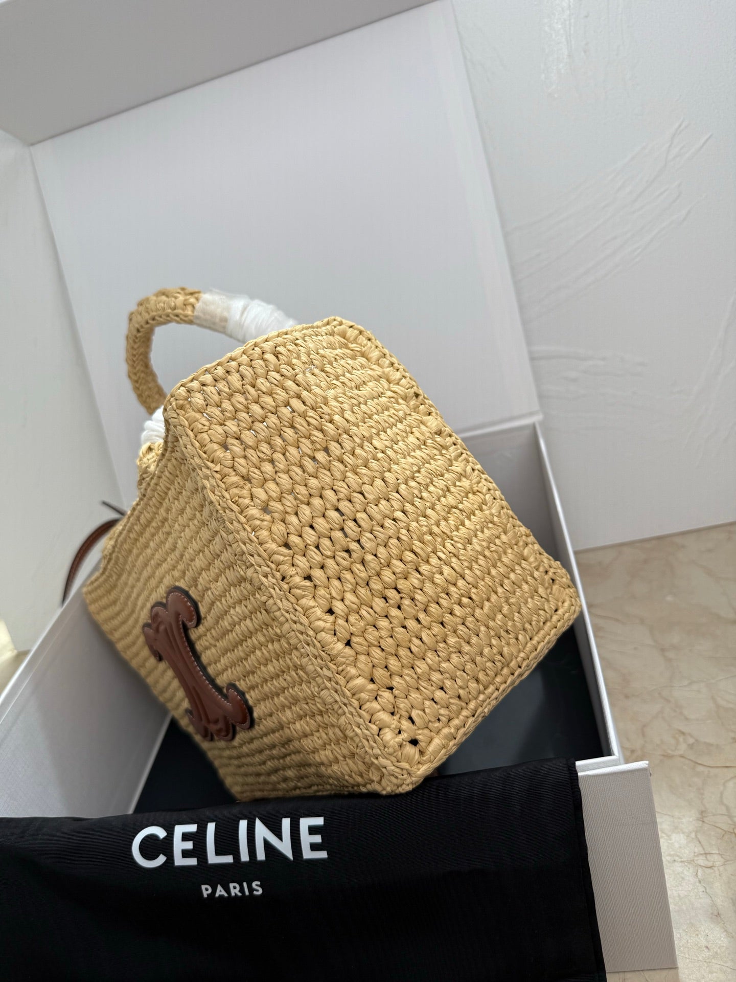 Elevate your summer style with the Celine TCABAS THAIS Small Tote, a masterpiece of craftsmanship that effortlessly blends sophistication with casual elegance. This genuine grade handbag is expertly hand-woven from natural straw, offering a unique texture with every piece while adorned with luxurious cowhide leather trim.