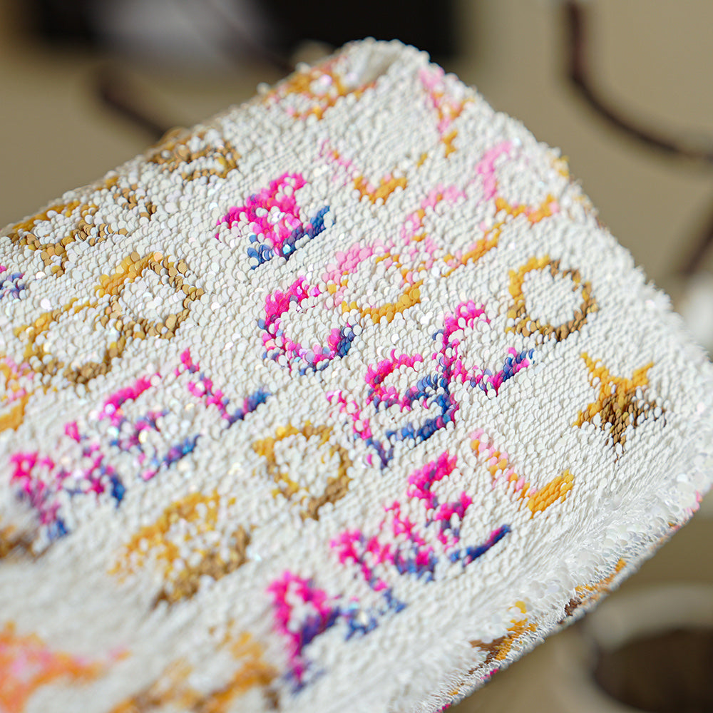 Adorned with stunning sequins that shimmer like stars against the night sky, this bag is truly a showstopper. The playful yet sophisticated color matching appeals to a variety of tastes, ensuring it complements any outfit. Versatile and practical, it can be worn under the arm or cross-body for effortless style.