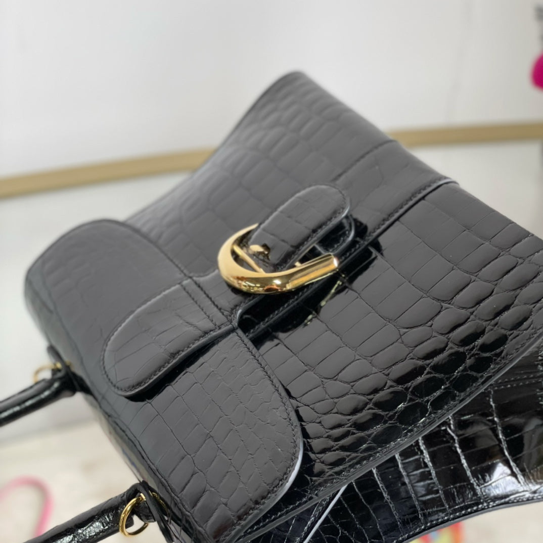 Delvo Glossy Black Leather Handbag