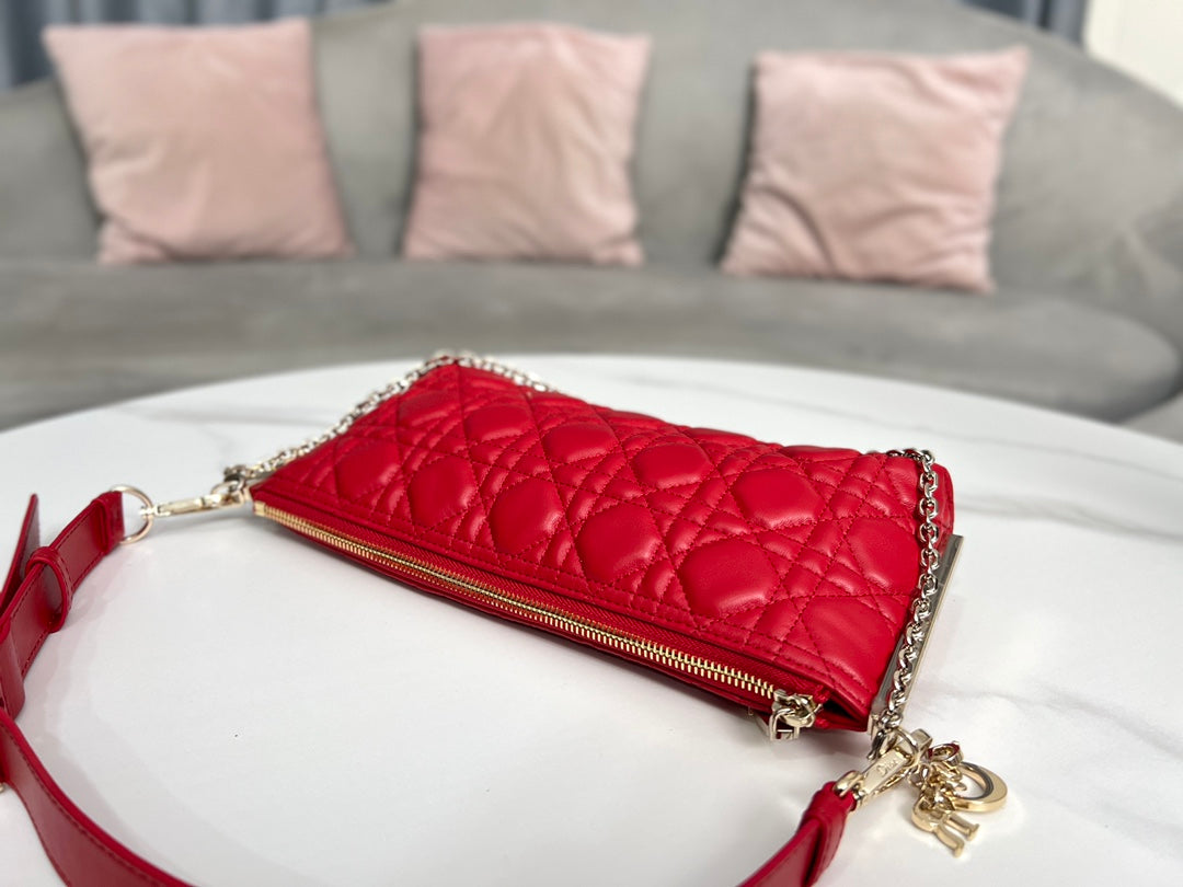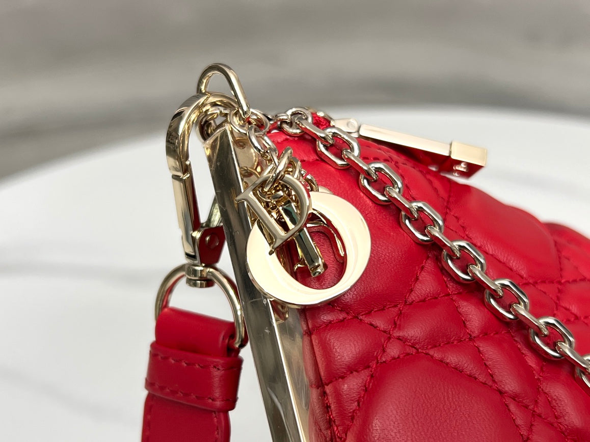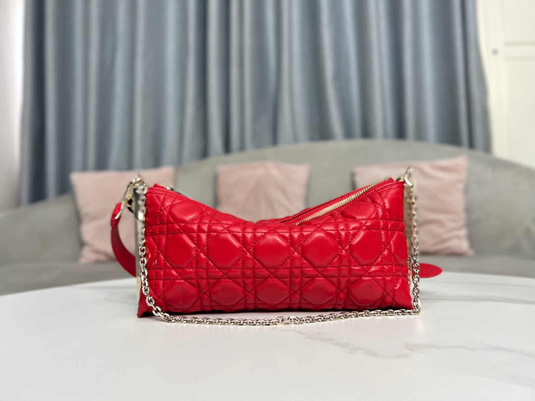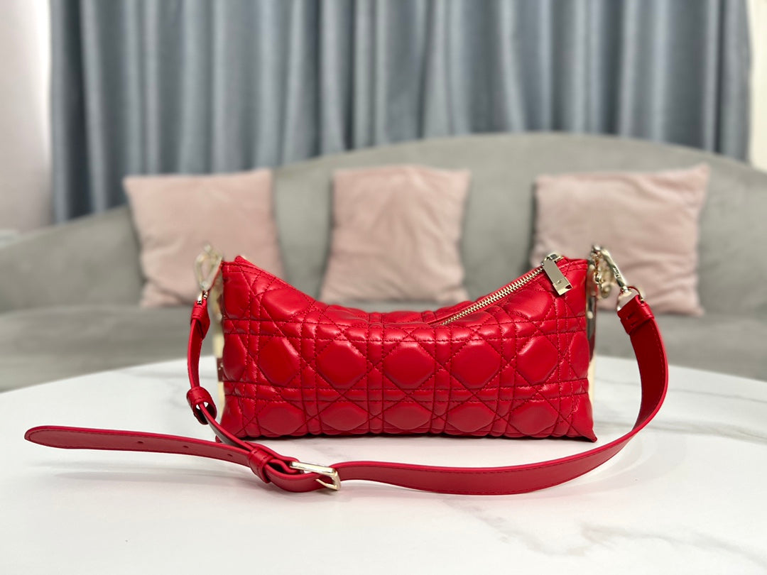 Discover the elegance of the authentic DIOR CLUB handbag, expertly crafted from luxurious bright red cannage sheepskin. This eye-catching accessory not only showcases Dior's iconic logo but also features a chic D.I.O.R. charm, enhancing its modern style for the summer of 2023.