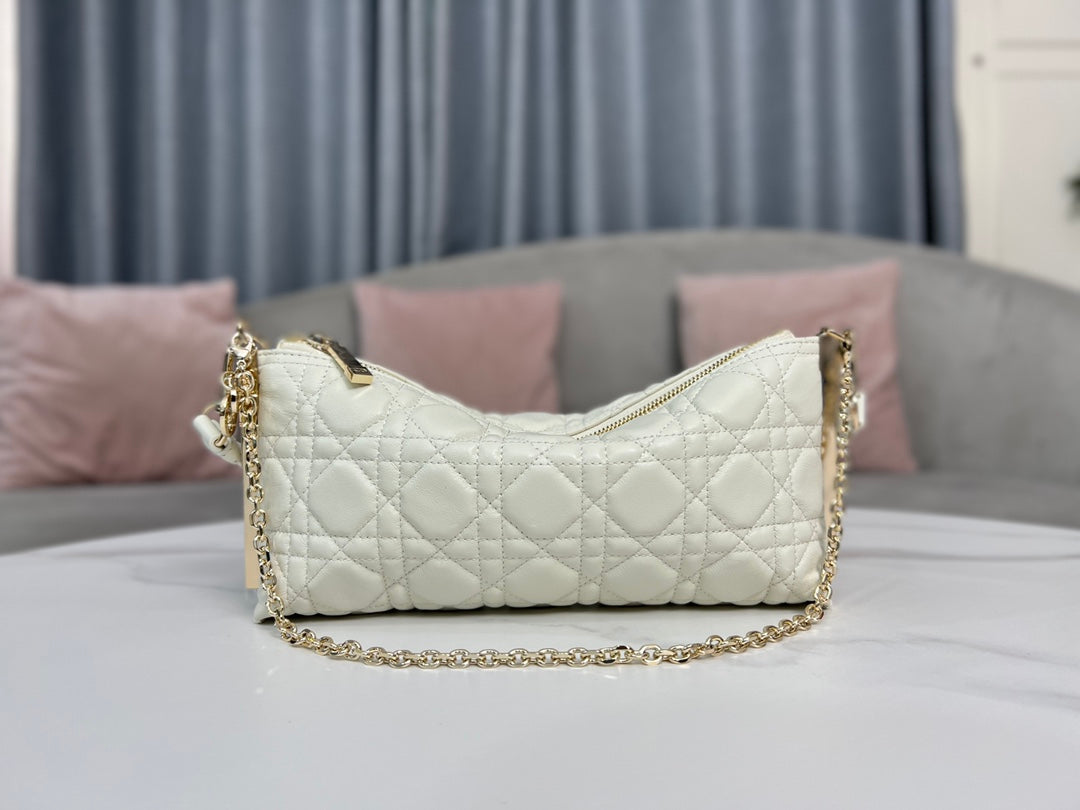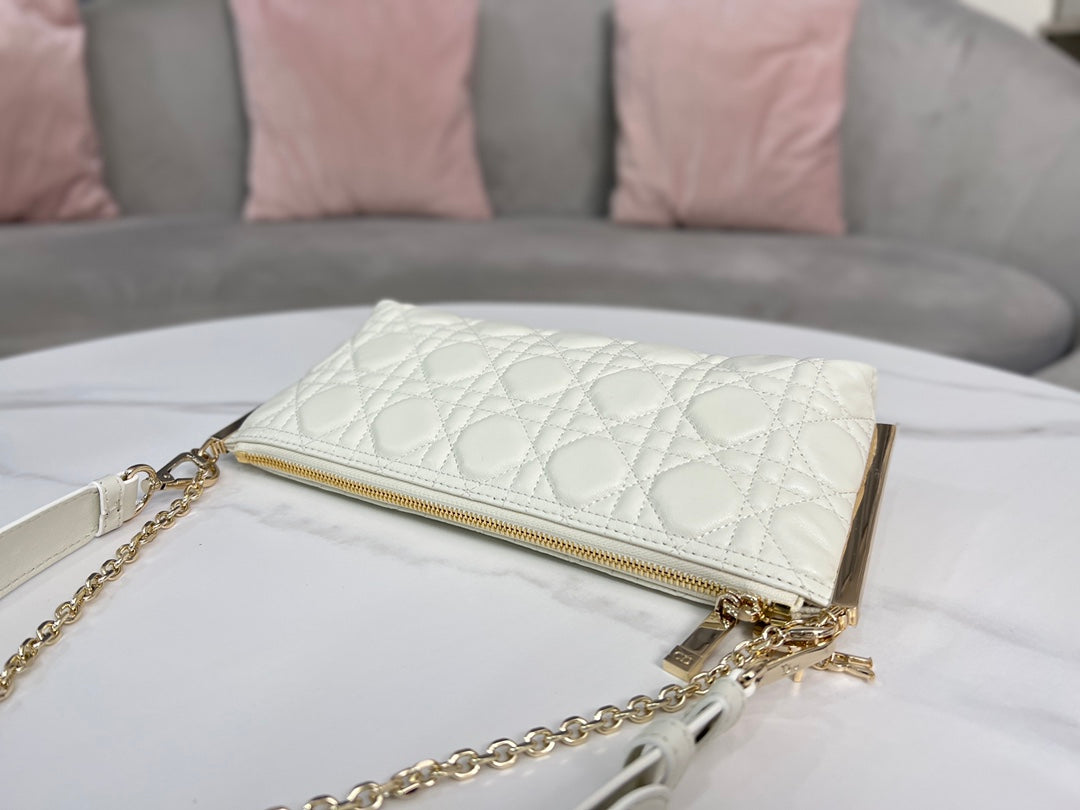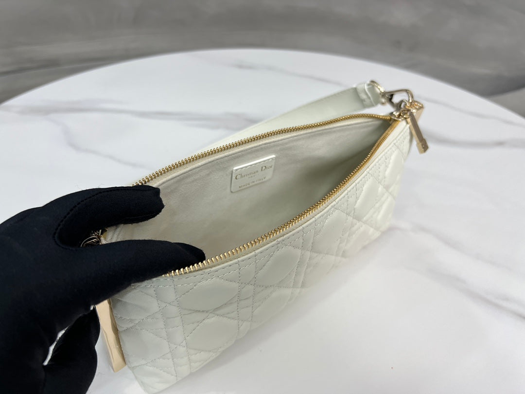 Introducing the Authentic DIOR CLUB Handbag, a perfect blend of style and practicality. This stunning handbag features a classic white sheepskin cannage pattern, accentuated by the iconic D.I.O.R. charm and gold-finish metal details, making it a standout accessory for the summer of 2023.