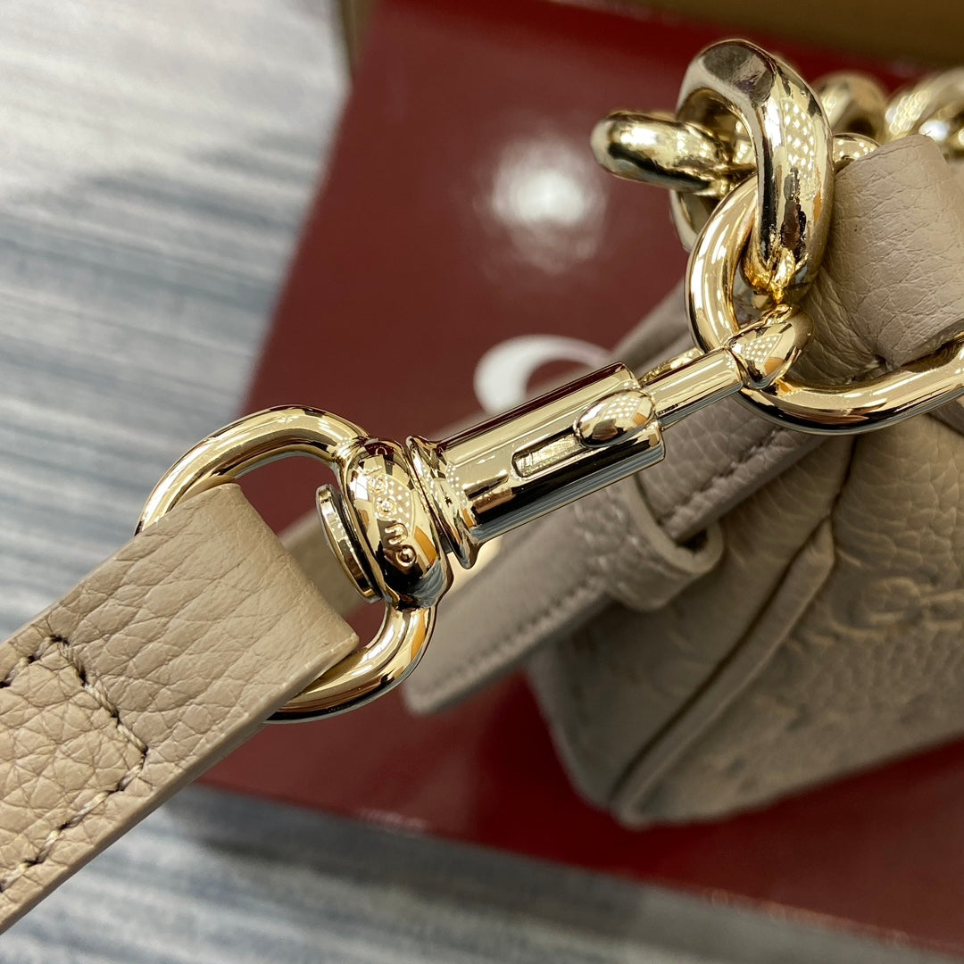 Elevate your style with the Gucci GG Emblem Medium Shoulder Bag, a sophisticated accessory that embodies the brand's timeless elegance and expert craftsmanship. Crafted from premium GG grained leather, this bag features a striking chain shoulder strap that adds a vibrant touch to your look.