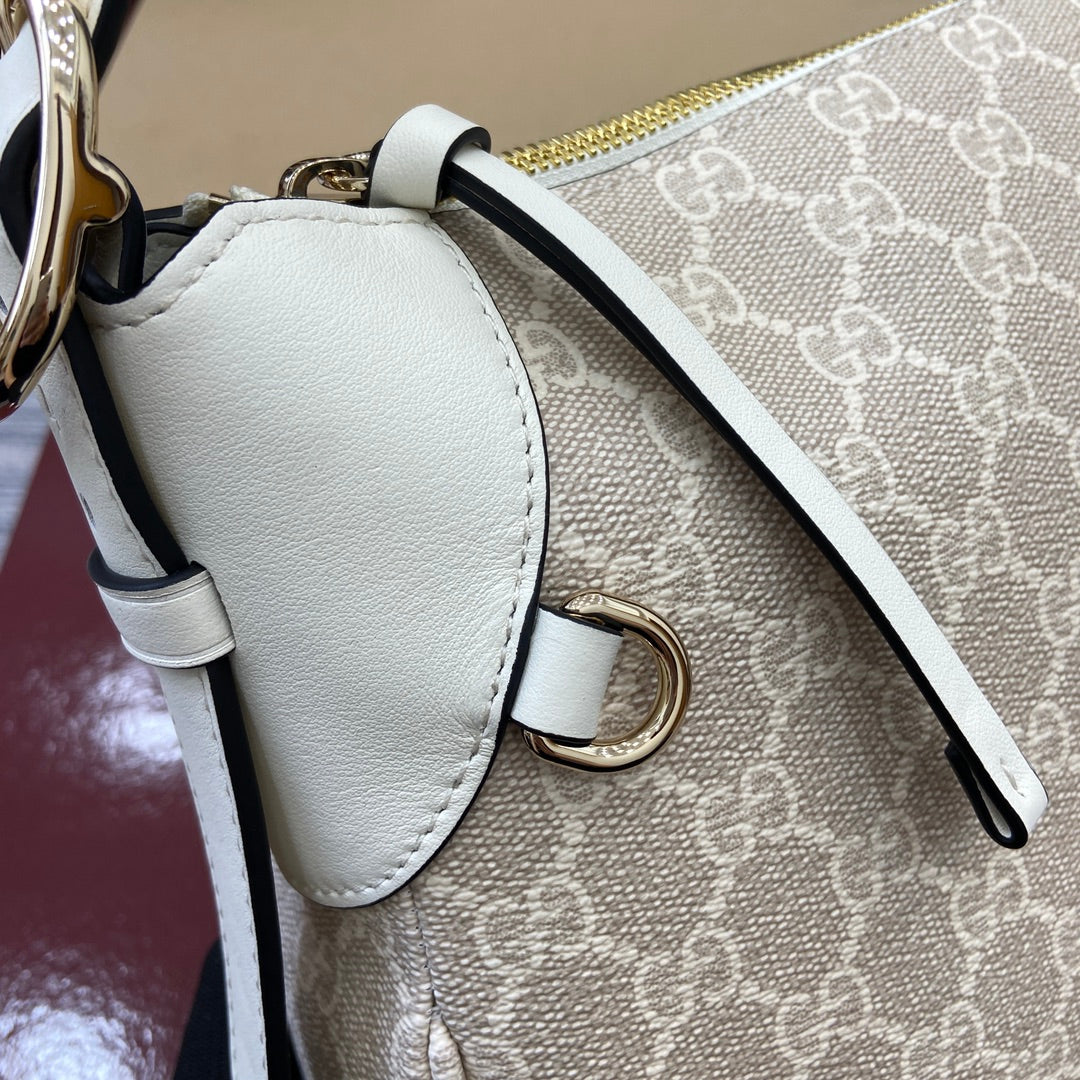 Gucci GG Emblem Medium Shoulder Bag - Oatmeal PVC