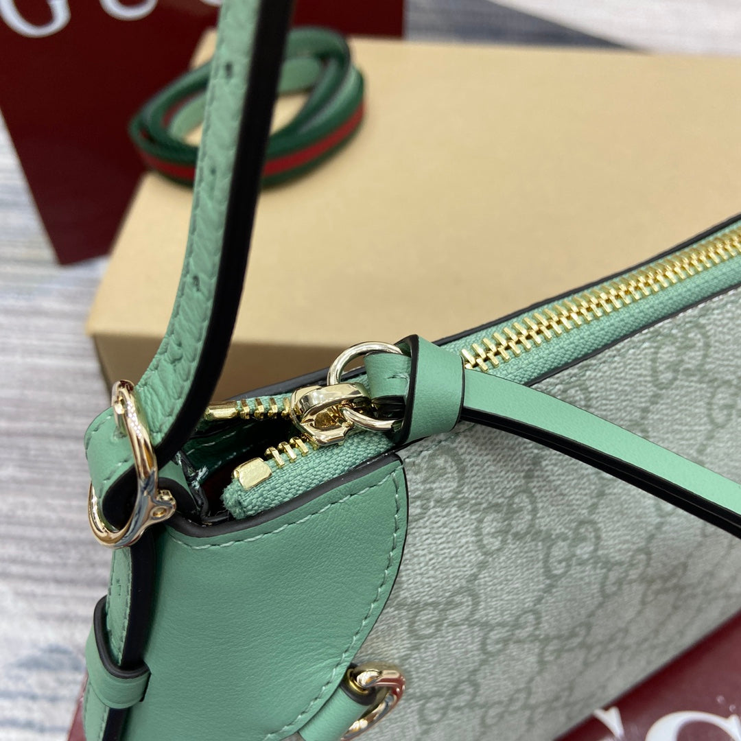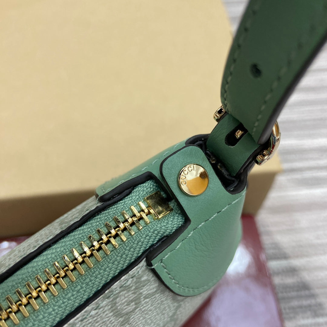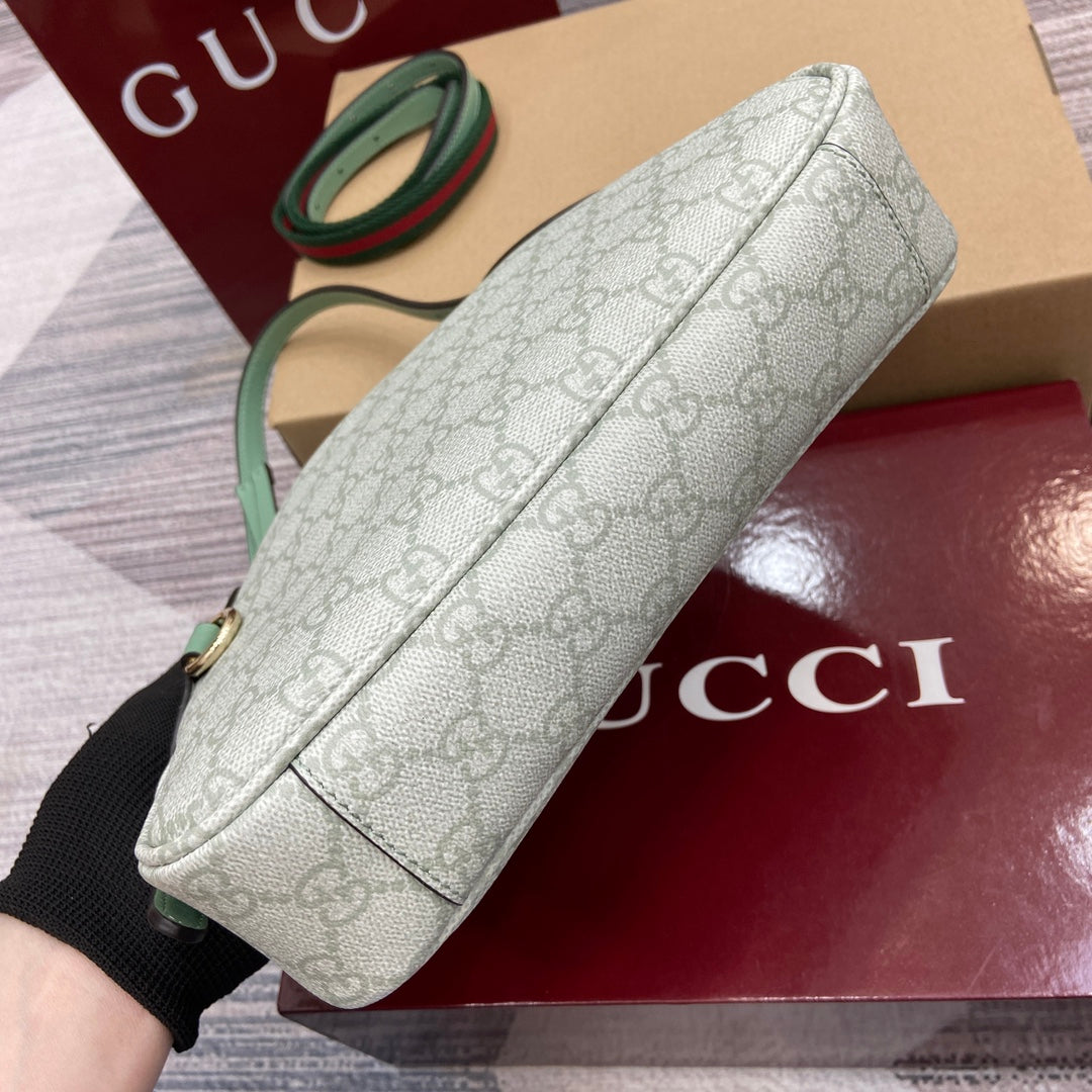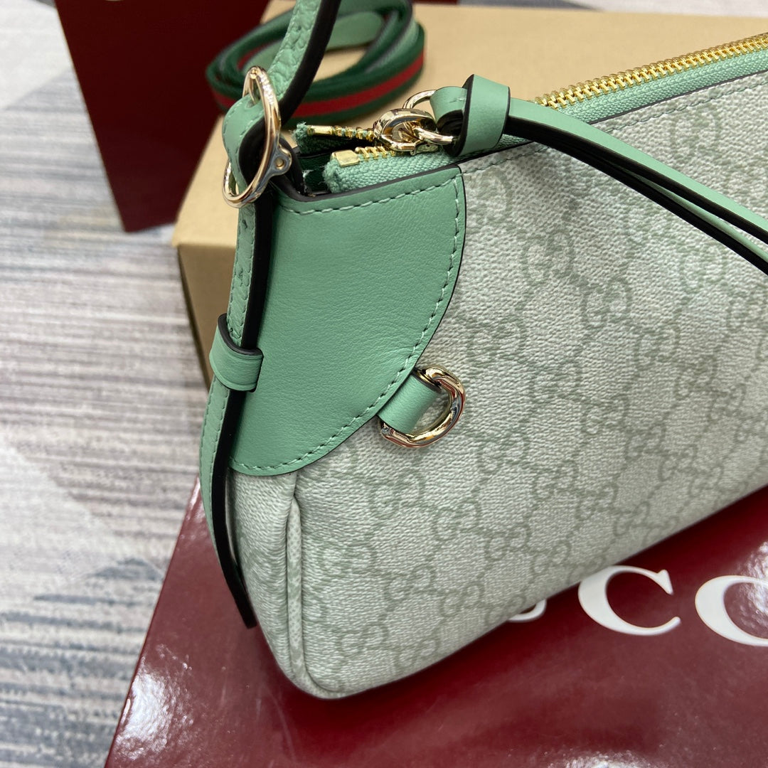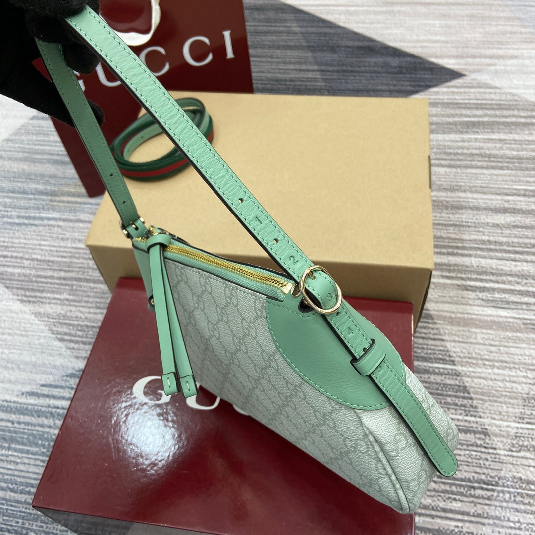 Gucci GG Emblem Small Shoulder Bag - Gray Green PVC/Leather
