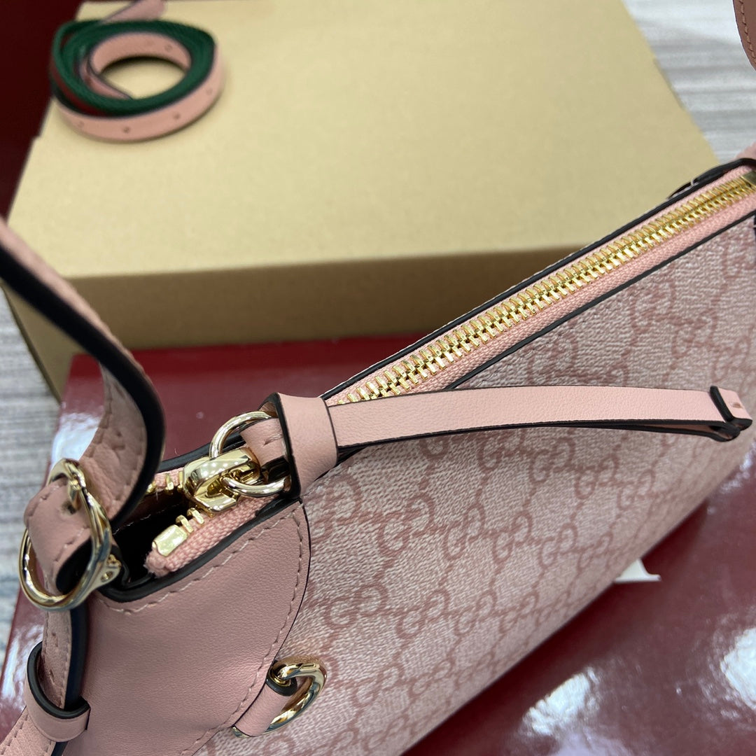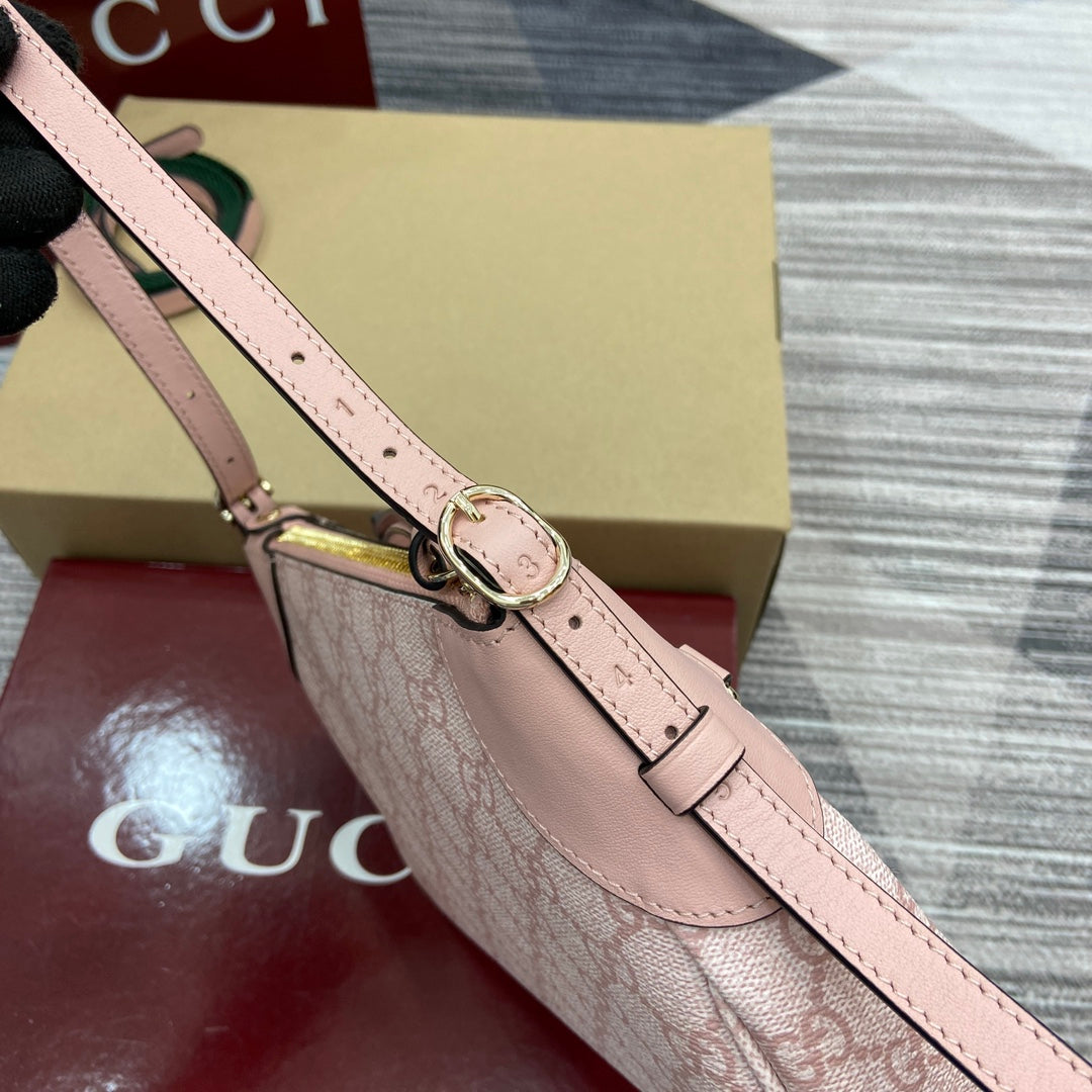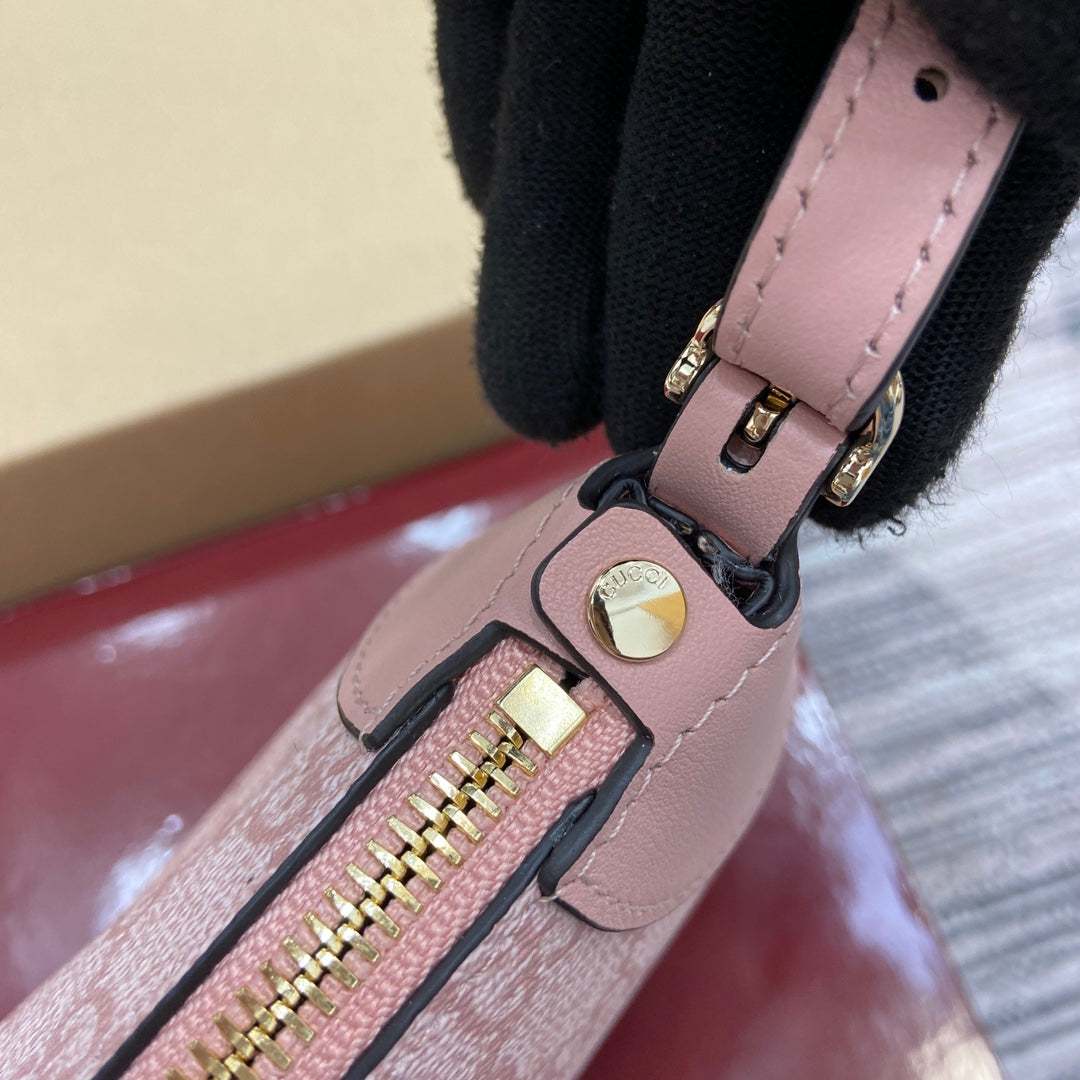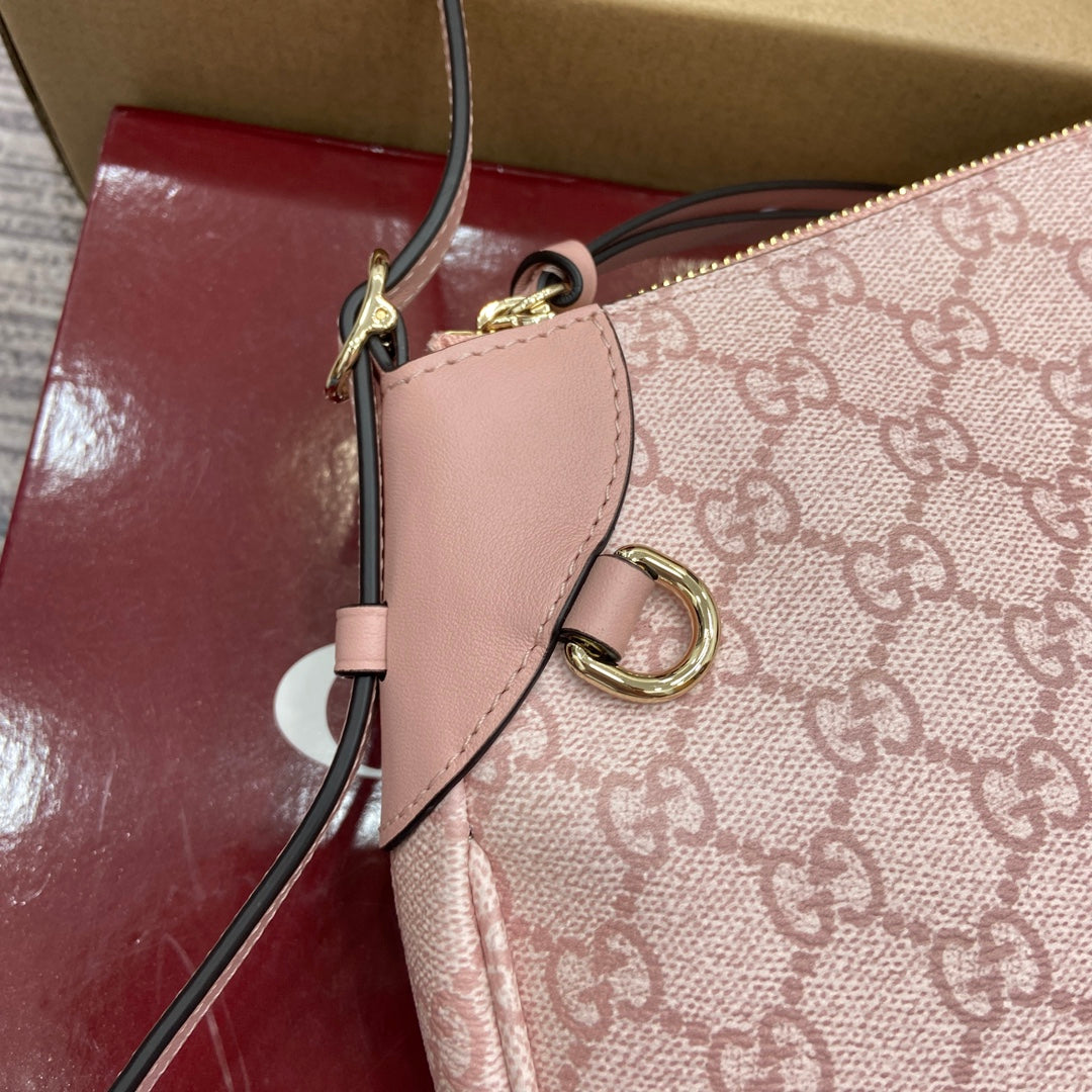 Gucci GG Emblem Small Shoulder Bag in Pink Leather