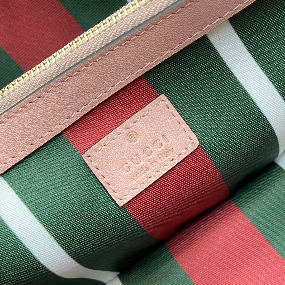 Elevate your style with the Gucci GG Emblem Small Tote Bag, a stunning blend of timeless elegance and exceptional craftsmanship. Crafted from premium light pink leather, this tote features adjustable handles adorned with eyelets, inspired by the sophisticated equestrian aesthetic.
