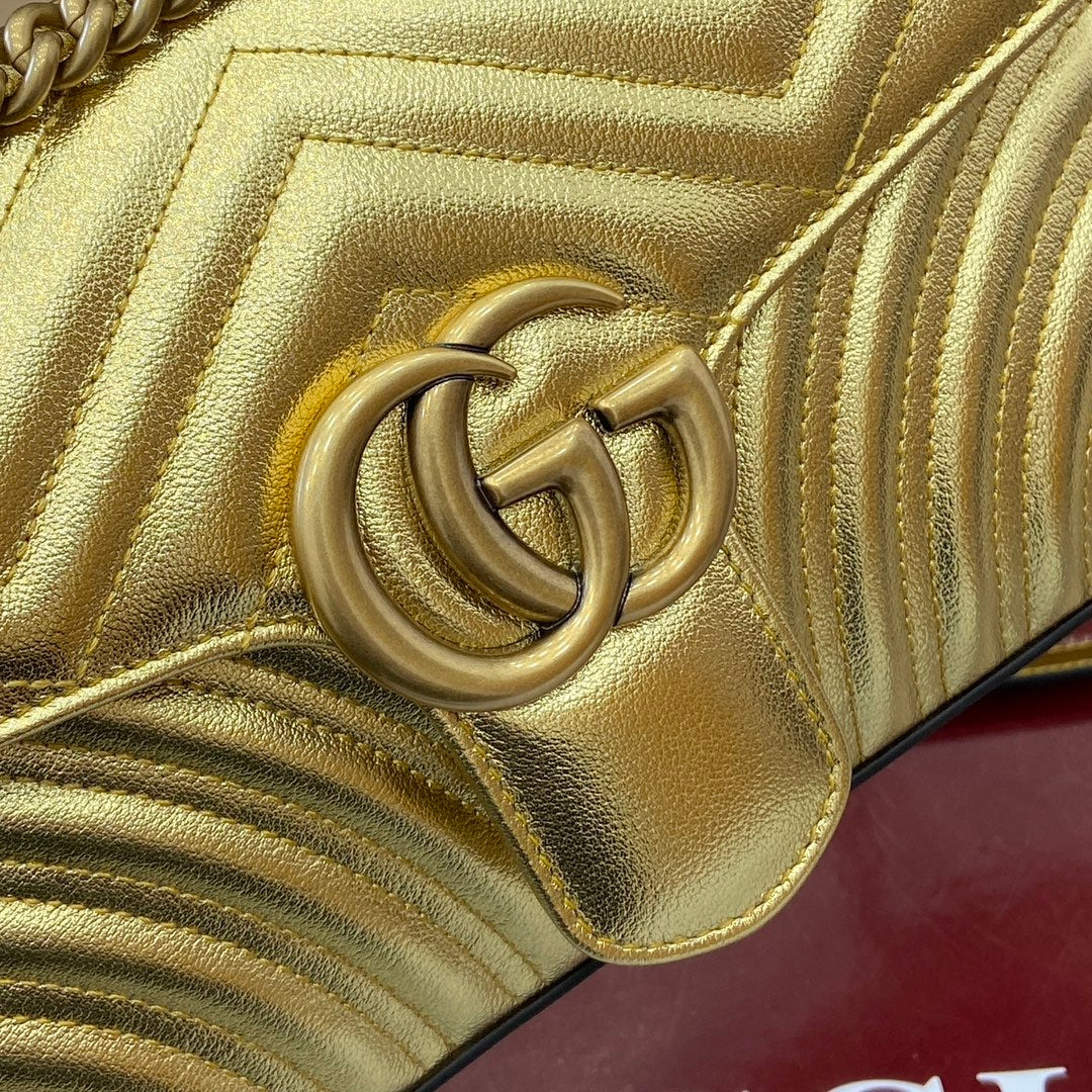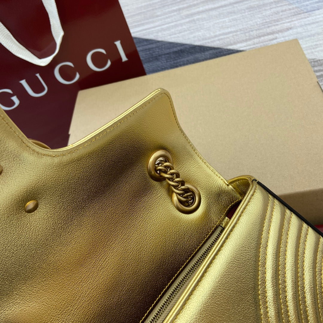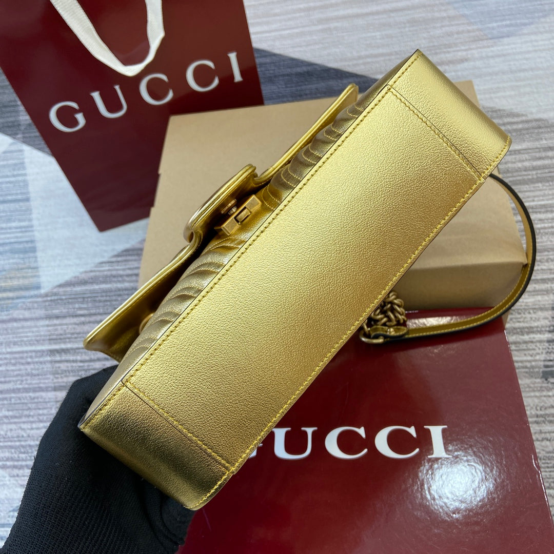 Gucci GG Marmont Small Shoulder Bag - Gold Metallic Leather