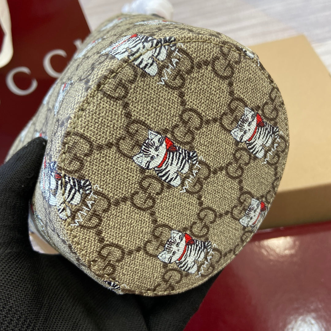 Discover a unique blend of art and function with the Gucci Children's Bucket Bag, designed by renowned Korean creator and painter Naon Jeong. Crafted from premium GG Supreme canvas, this delightful bag features an eye-catching "what?" kitten print that brings a playful edge to any outfit.