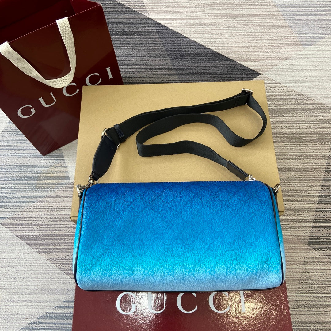 Elevate your style with the Gucci Gradient Blue GG Monogram Boston Bag, a perfect blend of fashion and functionality. Crafted from premium GG Monogram coated fabric, this luxurious bag features a stunning all-over gradient print that exudes sophistication.