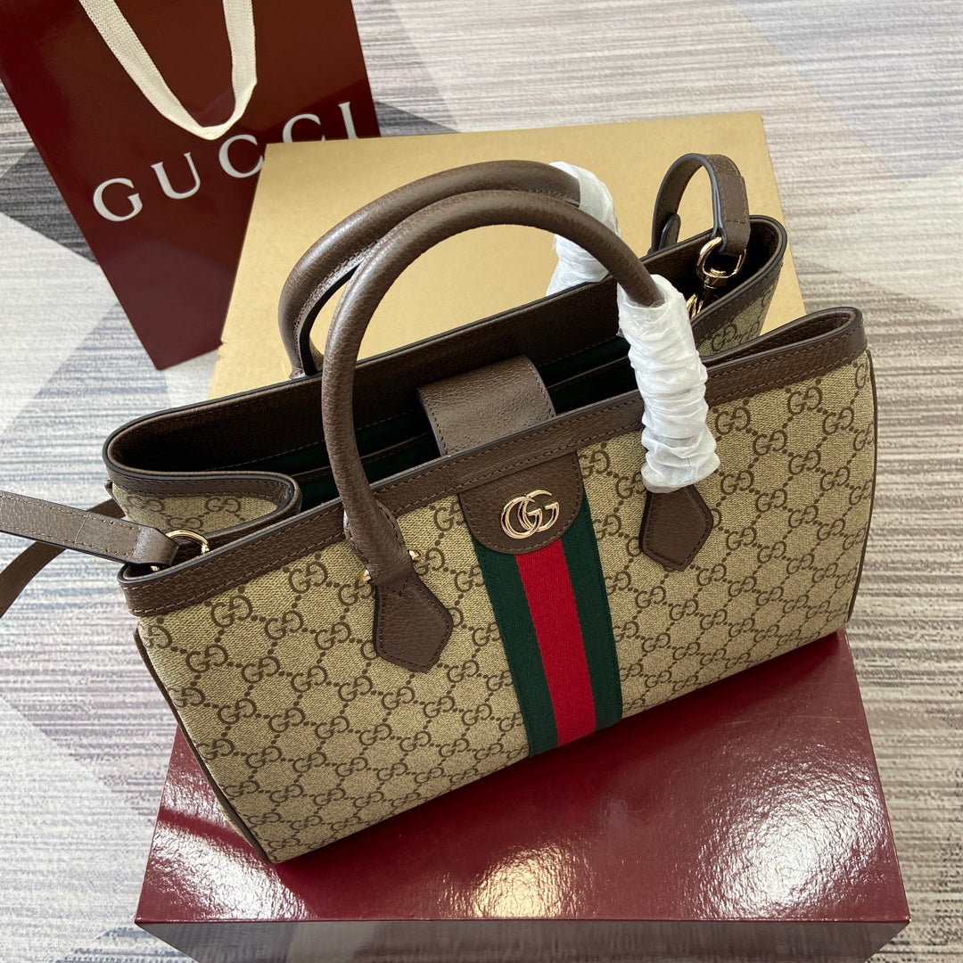 Experience luxury with the Gucci Ophidia Handbag, meticulously crafted from genuine beige and dark brown GG canvas. This stylish bag features premium brown leather trim and light gold-tone hardware, making it a perfect blend of elegance and functionality.