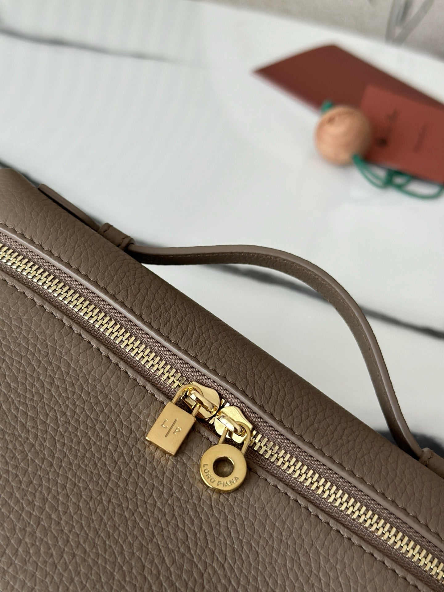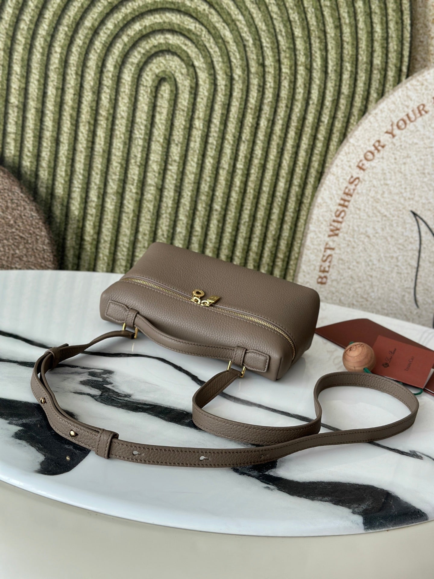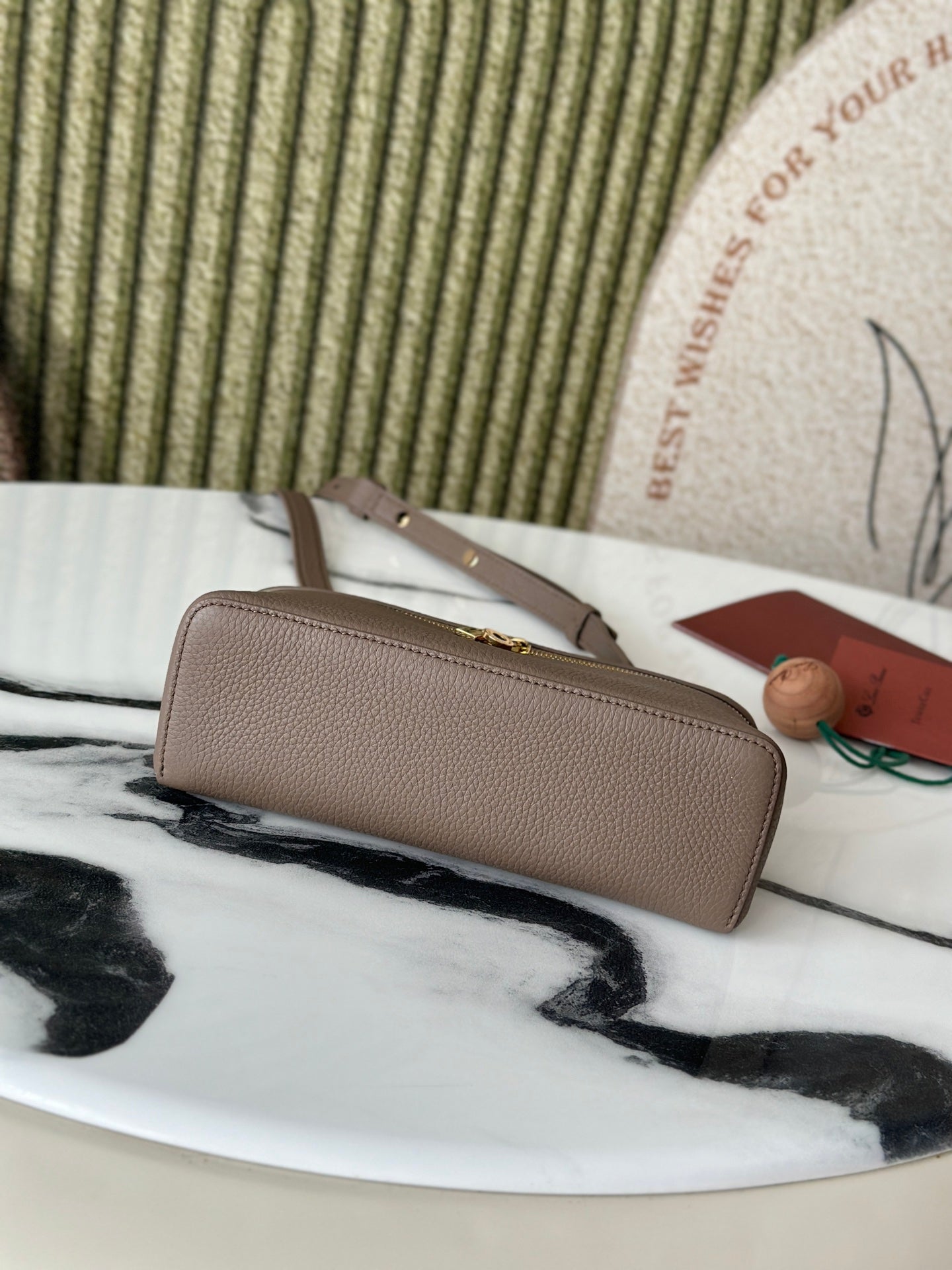Introducing the L19 Elephant Gray Handbag, an elegant accessory designed for both style and functionality. This updated shoulder strap version features luxurious Loro Piana fabric and an additional pocket for enhanced convenience. Perfectly sized at 19 cm in length, 7 cm in width, and 12 cm in height (including the shoulder strap), this small handbag effortlessly transitions from a chic handbag to a fashionable crossbody. Elevate your outfit with this versatile accessory that combines sophistication with practicality.