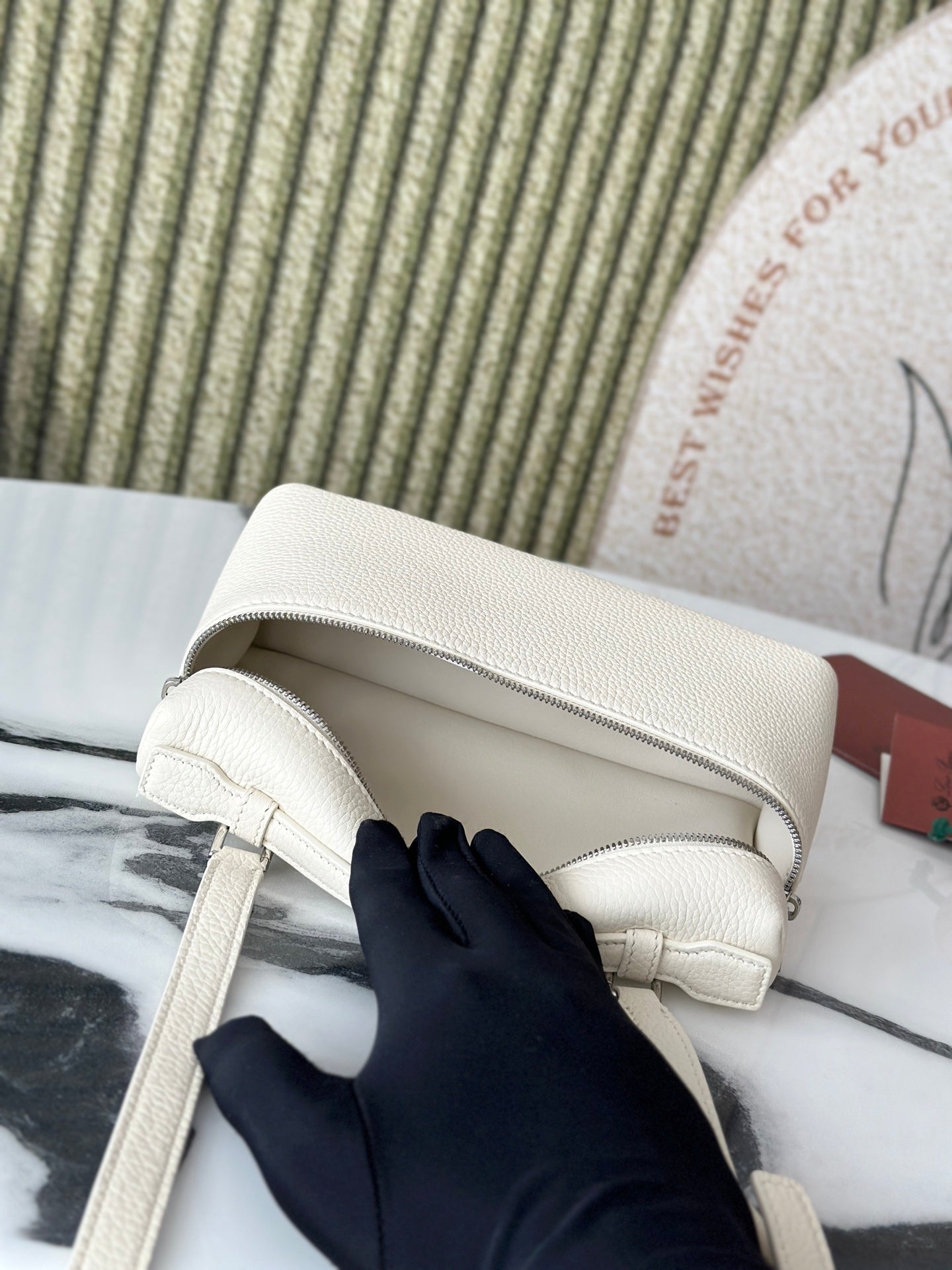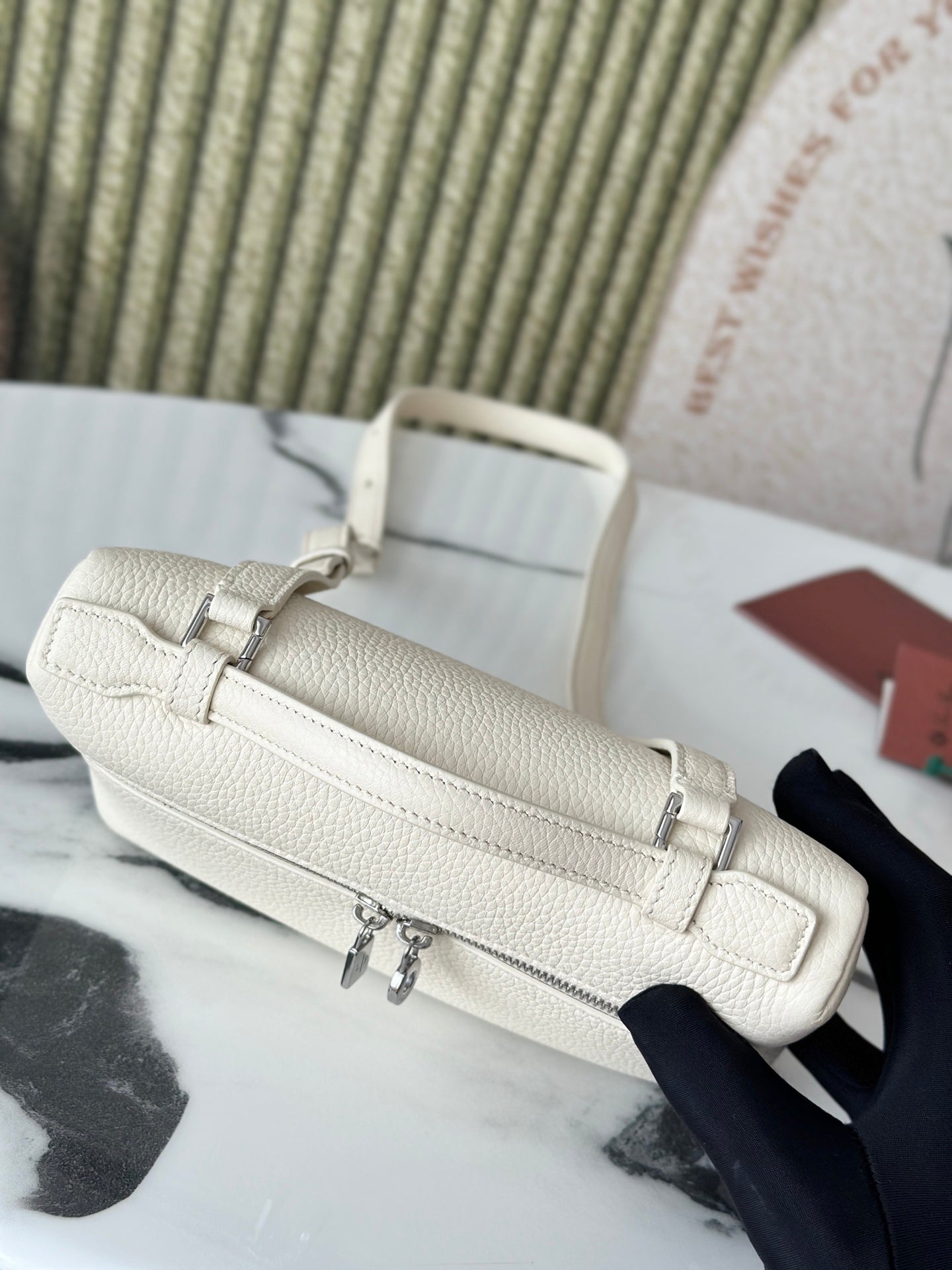 Introducing the L19 Milkshake Silver Buckle Bag – a stylish and versatile accessory designed for the modern individual. This handbag, part of the acclaimed L19 series, features a refined shoulder strap and an exquisite Loro Piana extra pocket for added functionality.