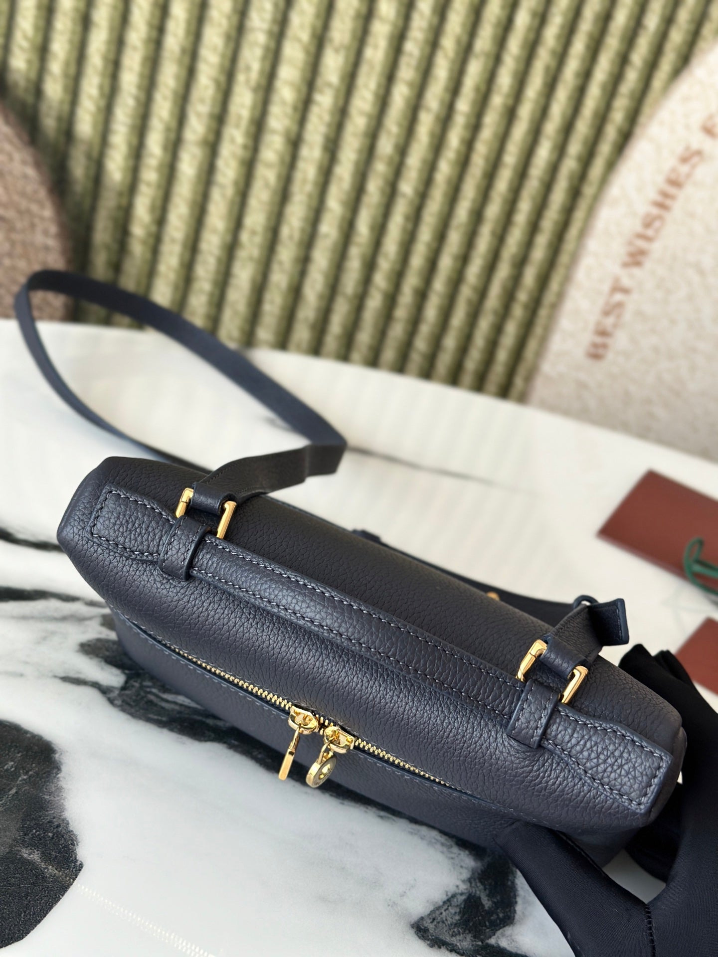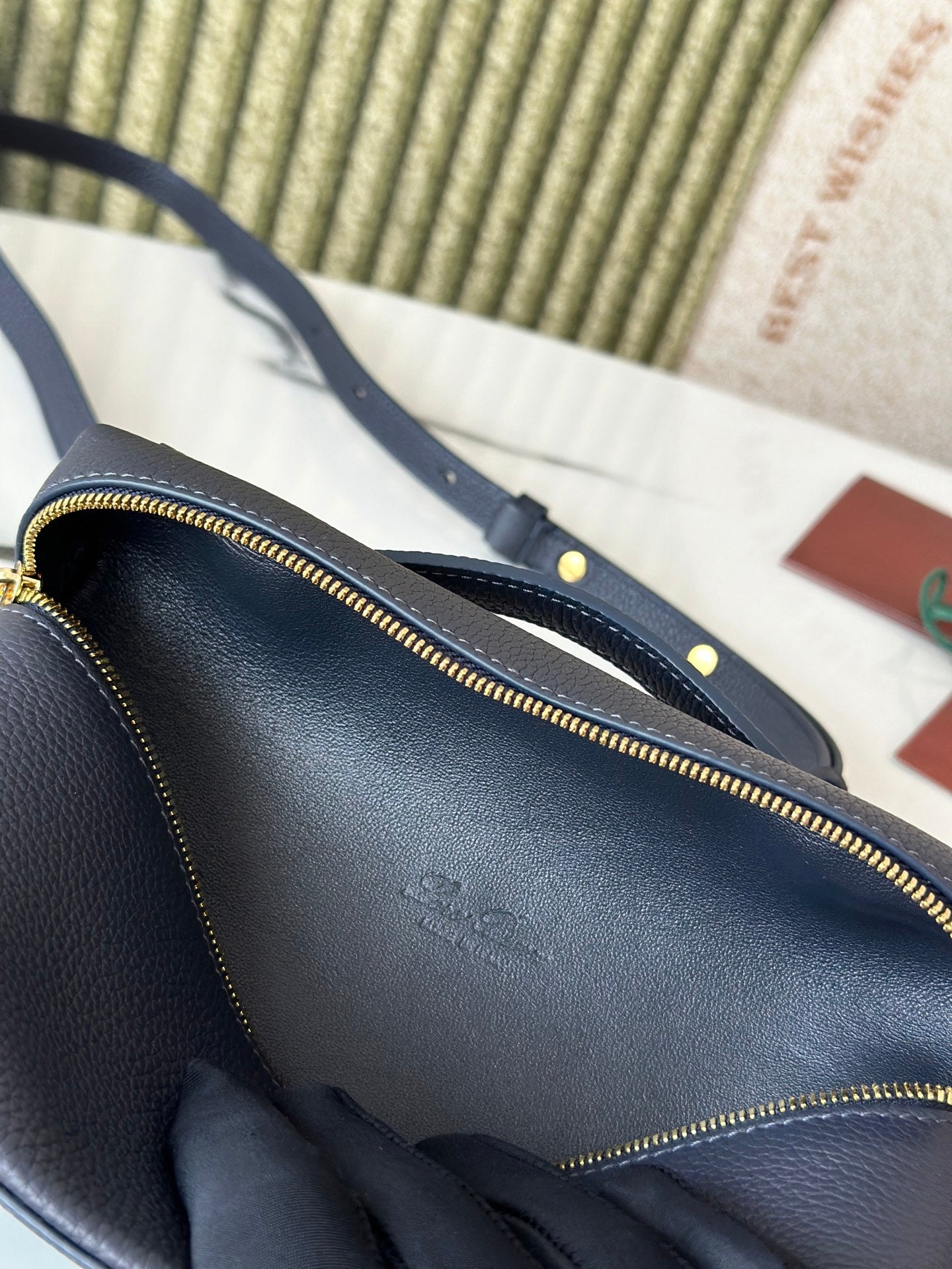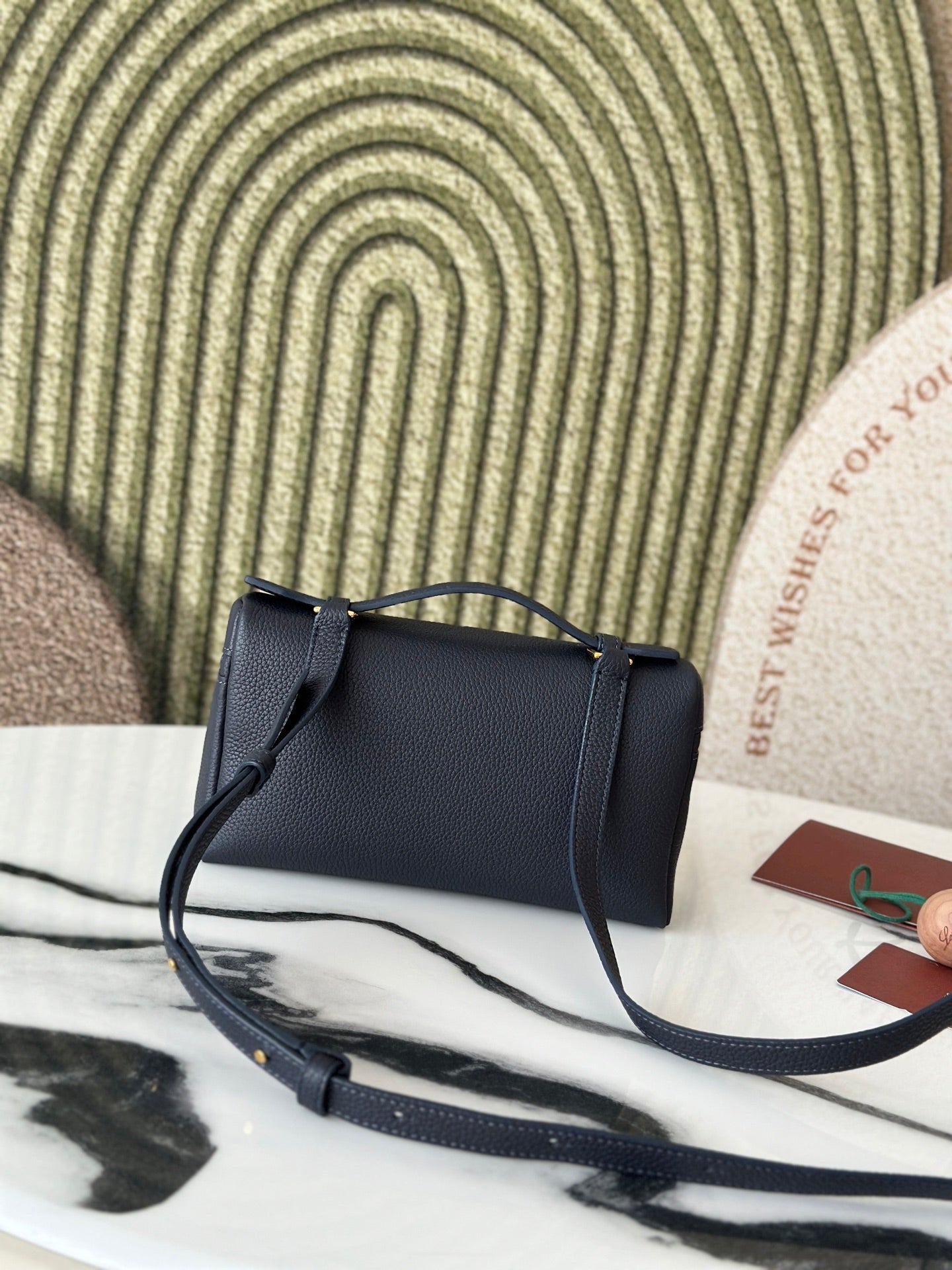 Discover the elegance of the L19 Navy Blue Handbag, featuring a luxurious gold buckle and an updated shoulder strap design. Crafted with precision, this handbag doubles as a crossbody bag, perfect for any occasion. With a size of 19 cm in length, 7 cm in width, and 12 cm in height (including the shoulder strap), it offers ample space for your essentials. The exclusive Loro Piana extra pocket adds functionality and style, making it a must-have accessory for your wardrobe. Elevate your fashion game with this chic and versatile handbag.