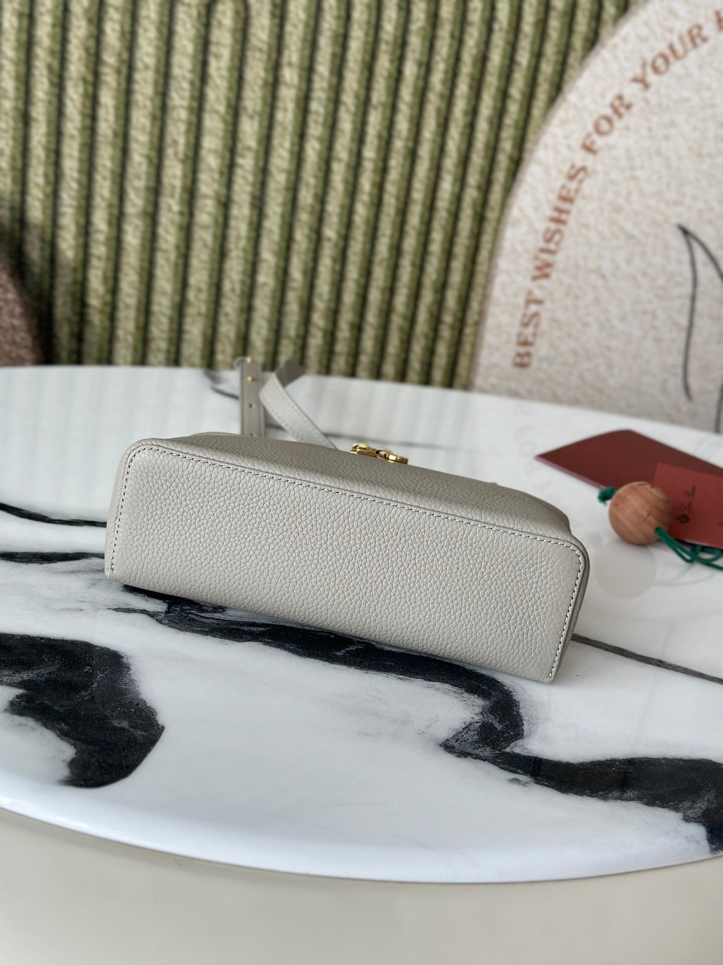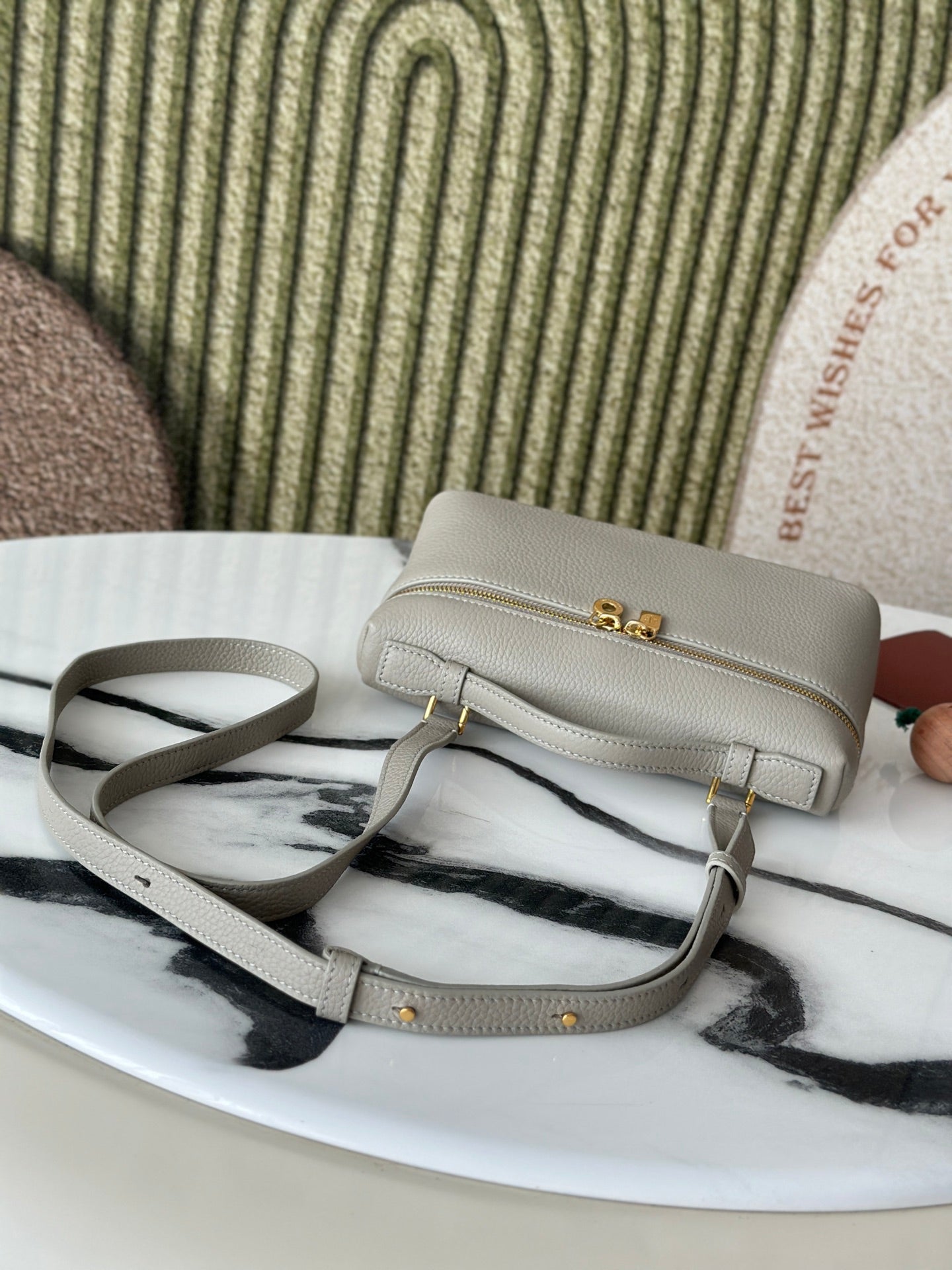 L19 Stone Gray Handbag with Gold Buckle - Small Crossbody Bag