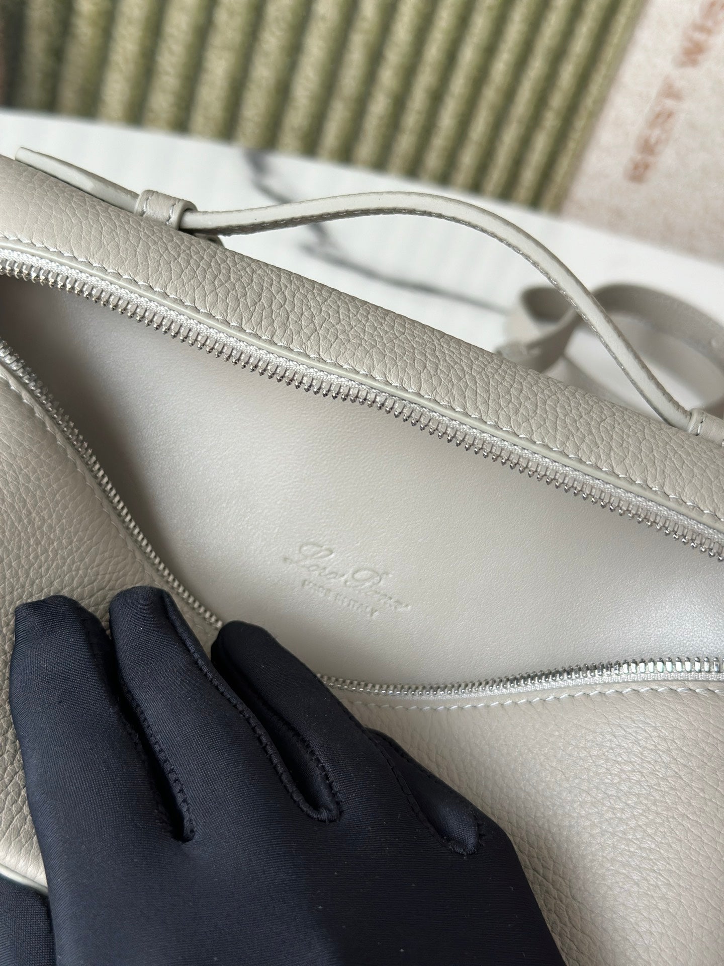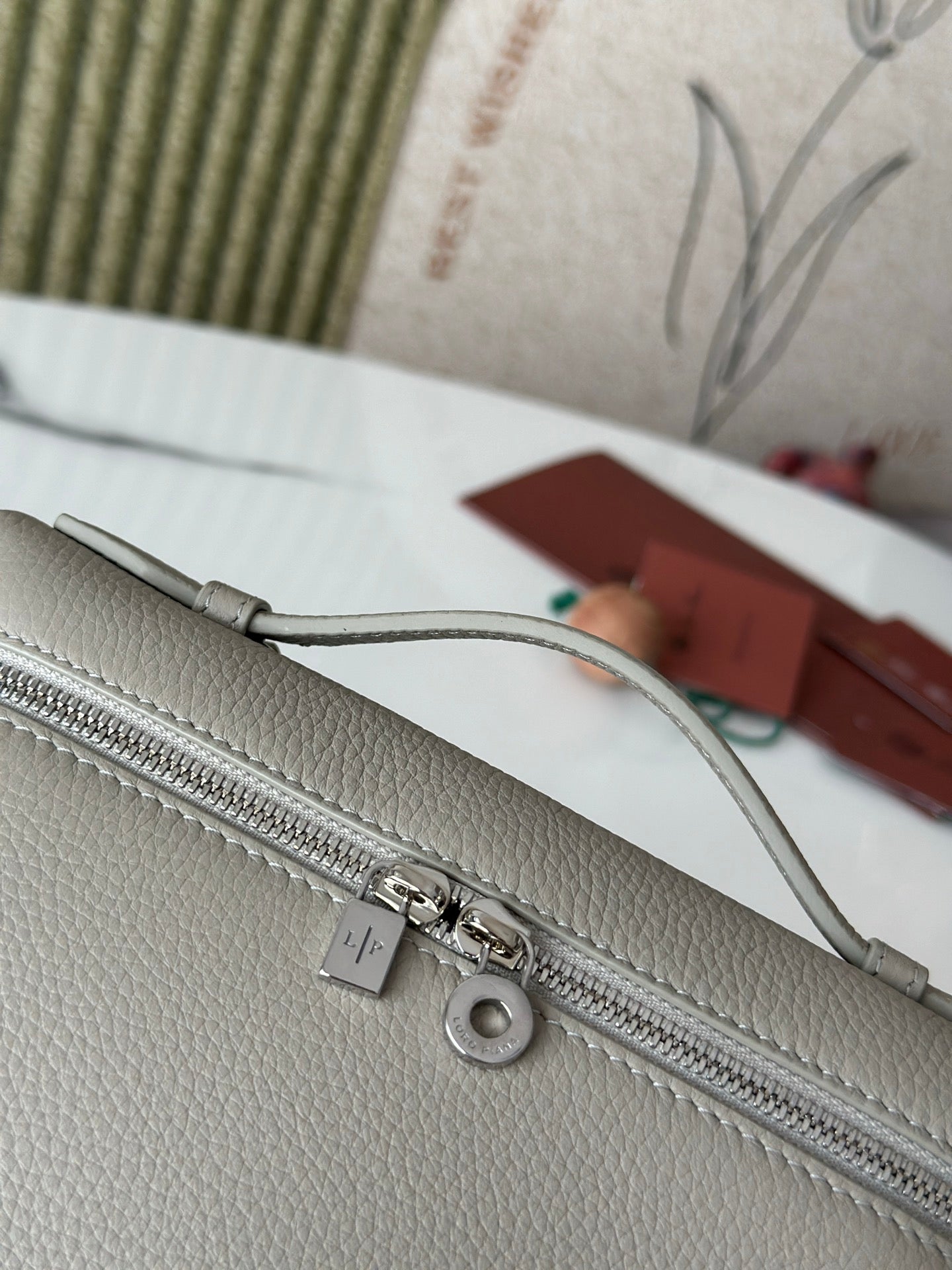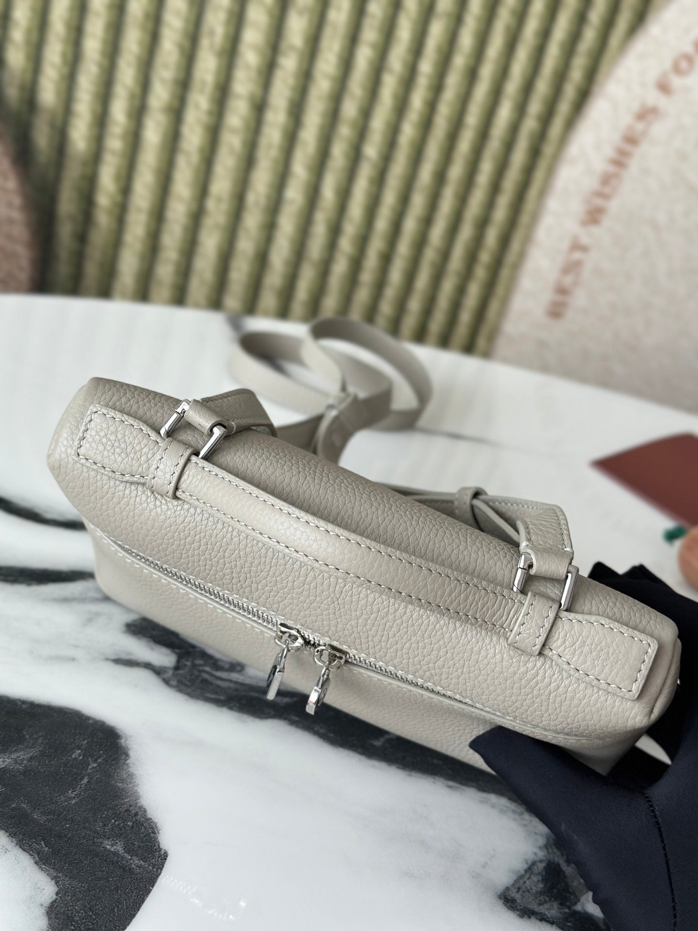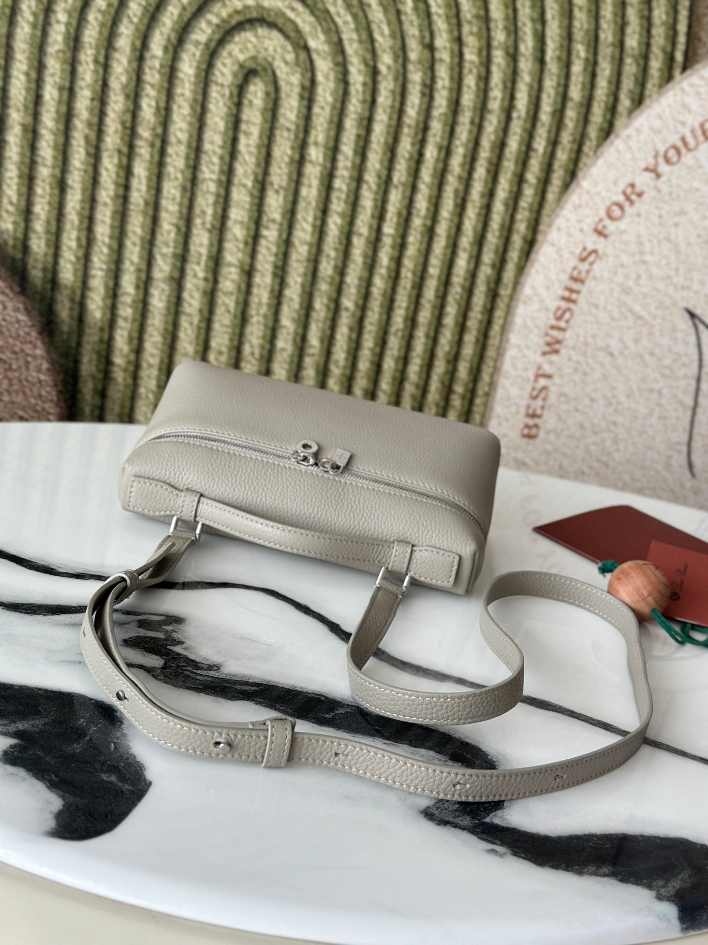 L19 Stone Gray Handbag with Silver Buckle and Extra Pocket