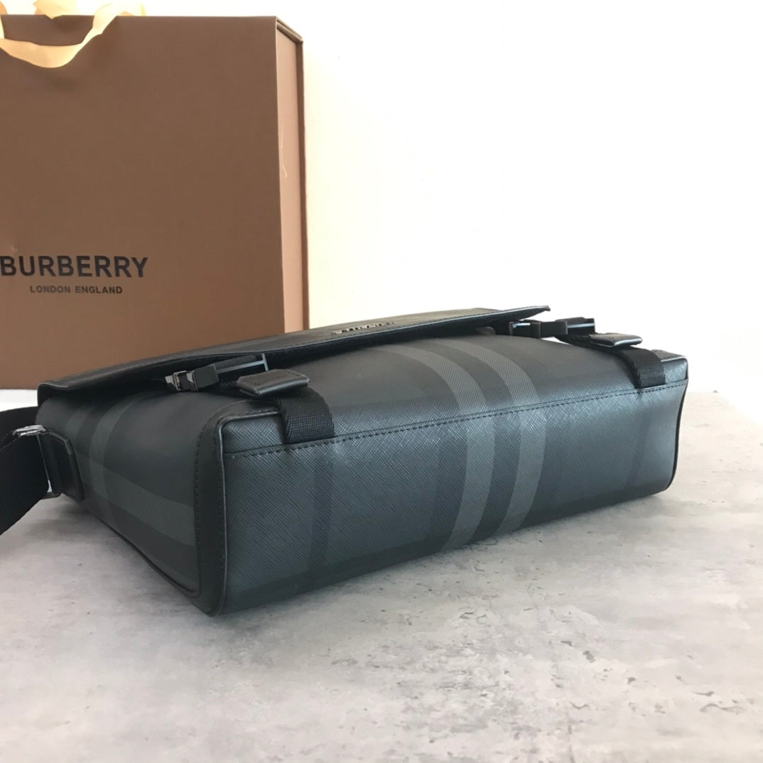 Introducing B's Large Charcoal Gray Plaid Messenger Bag, a stylish and functional accessory designed for the modern individual. Crafted with a striking plaid pattern and the brand's iconic logo, this messenger bag stands out while providing practicality and versatility.
