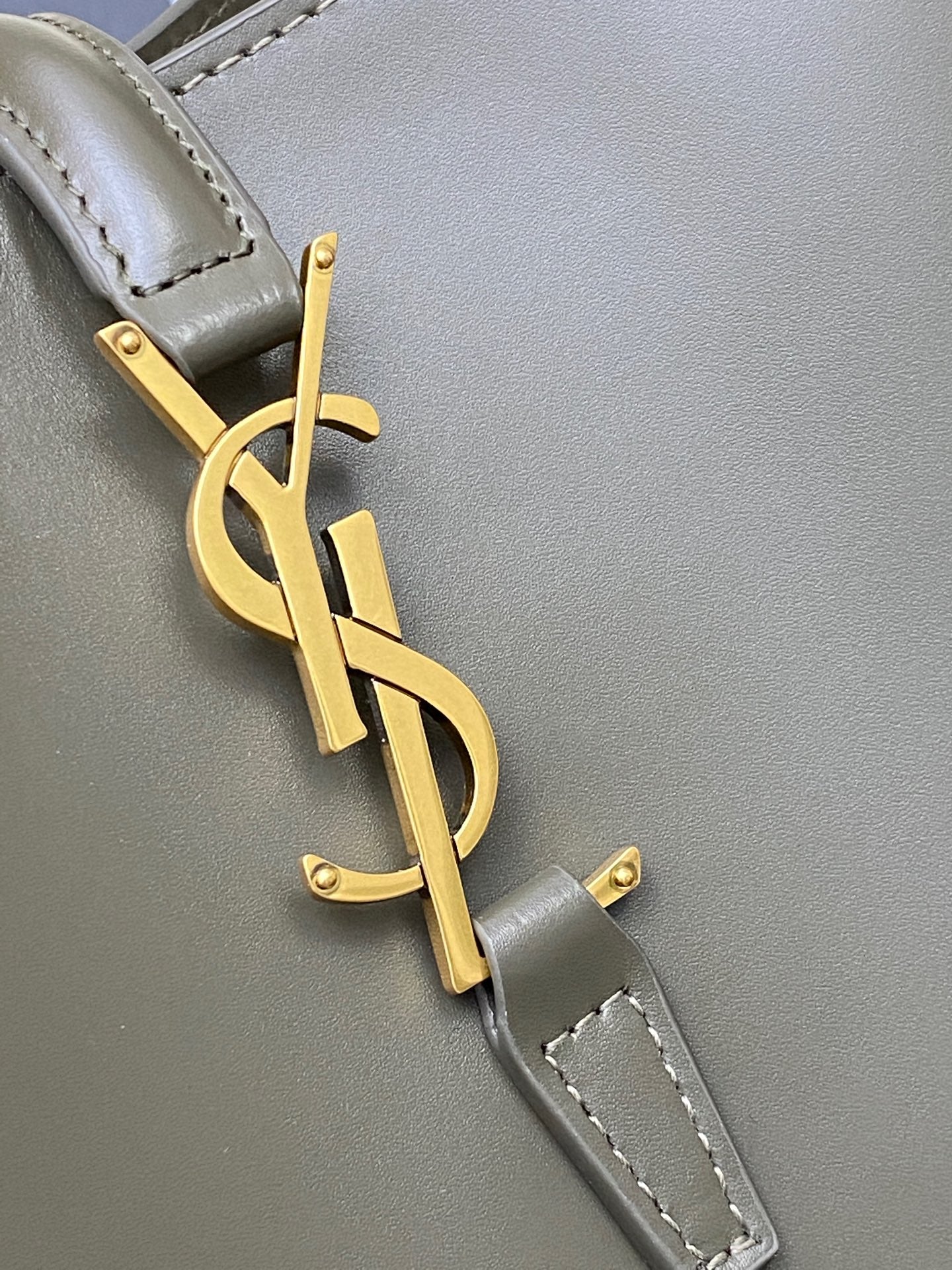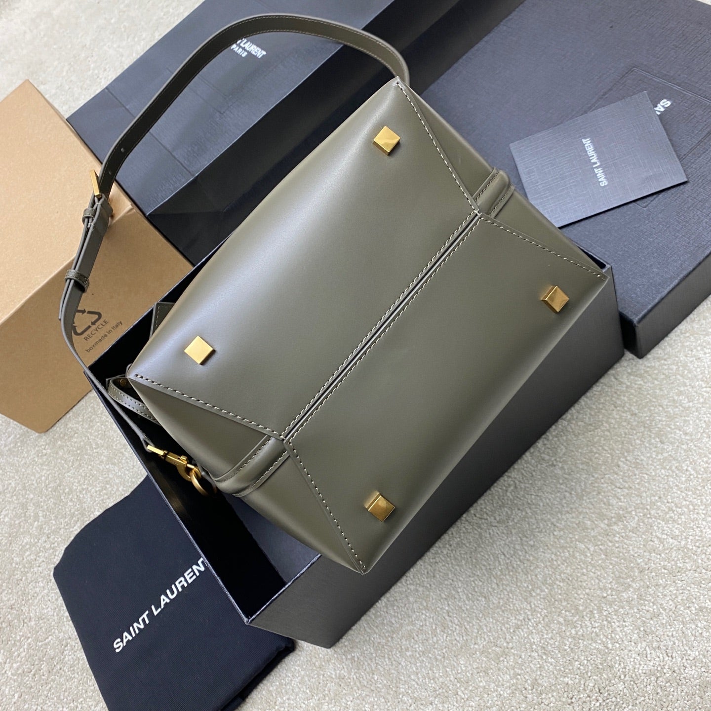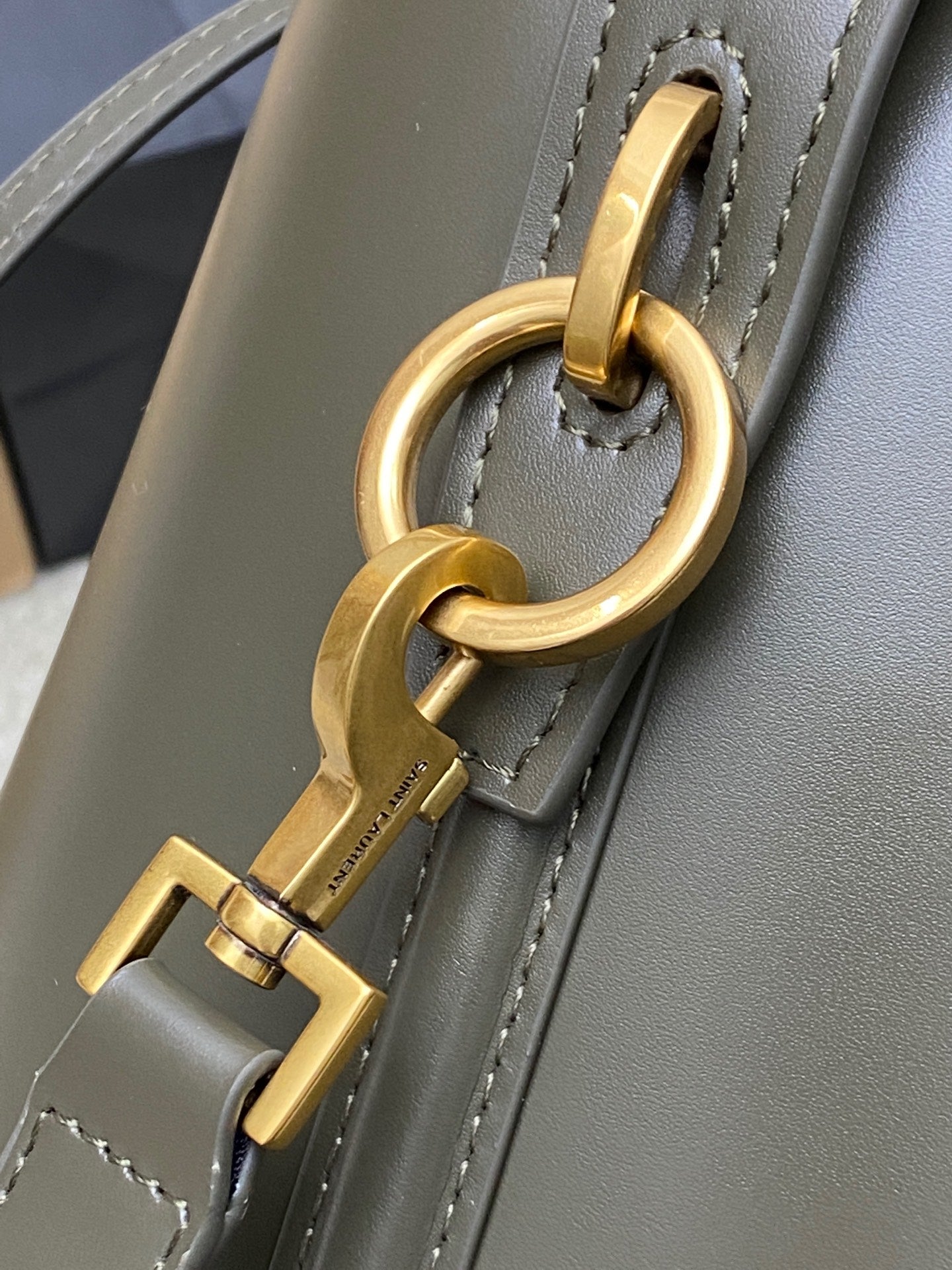 Discover the LE 5À7 series with our stunning Large Bucket Bag, crafted from premium Italian calfskin in a chic musk green and antique gold color scheme. This bag features a sleek and structured silhouette, combining elegance with a modern touch. The metal foot nails provide durability, while the iconic plug-in bag buckle showcases its classic design. With dimensions of 25×20×12 cm, this exquisite piece balances functionality and style, making it the perfect accessory for any occasion. Elevate your wardrobe with this luxurious and timeless bag.