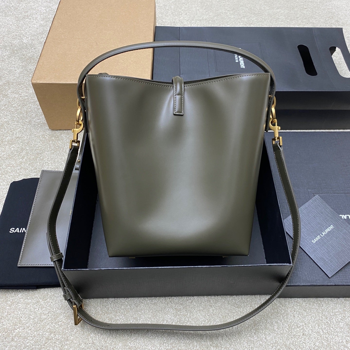 Large Italian Calfskin Bucket Bag - Musk Green & Antique Gold
