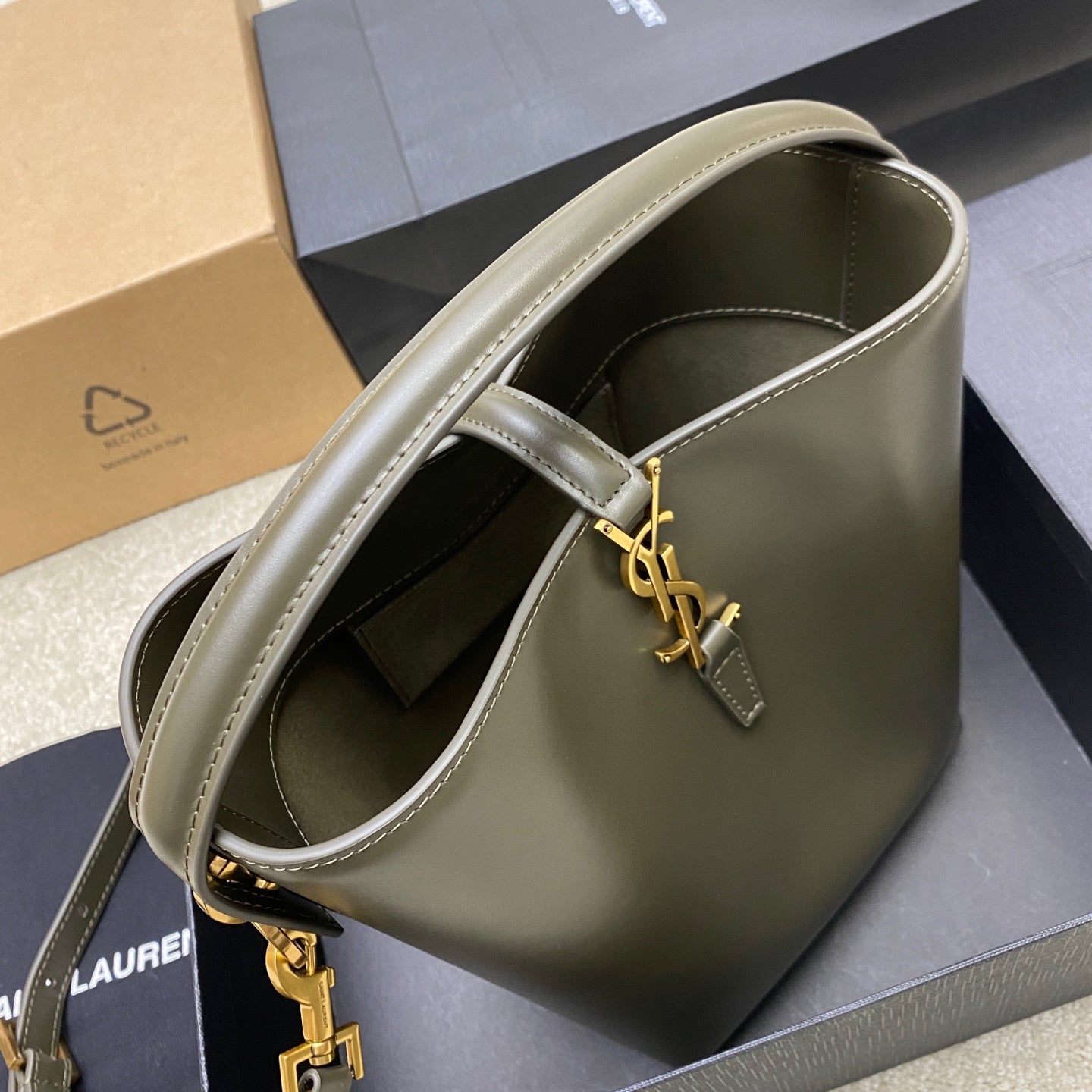 LE 5À7 Italian Calfskin Small Bucket Bag - Musk Green & Antique Gold