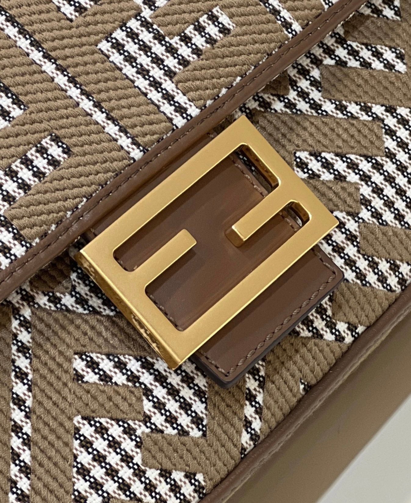 Luxury Houndstooth Baguette Bag with Embroidered Details