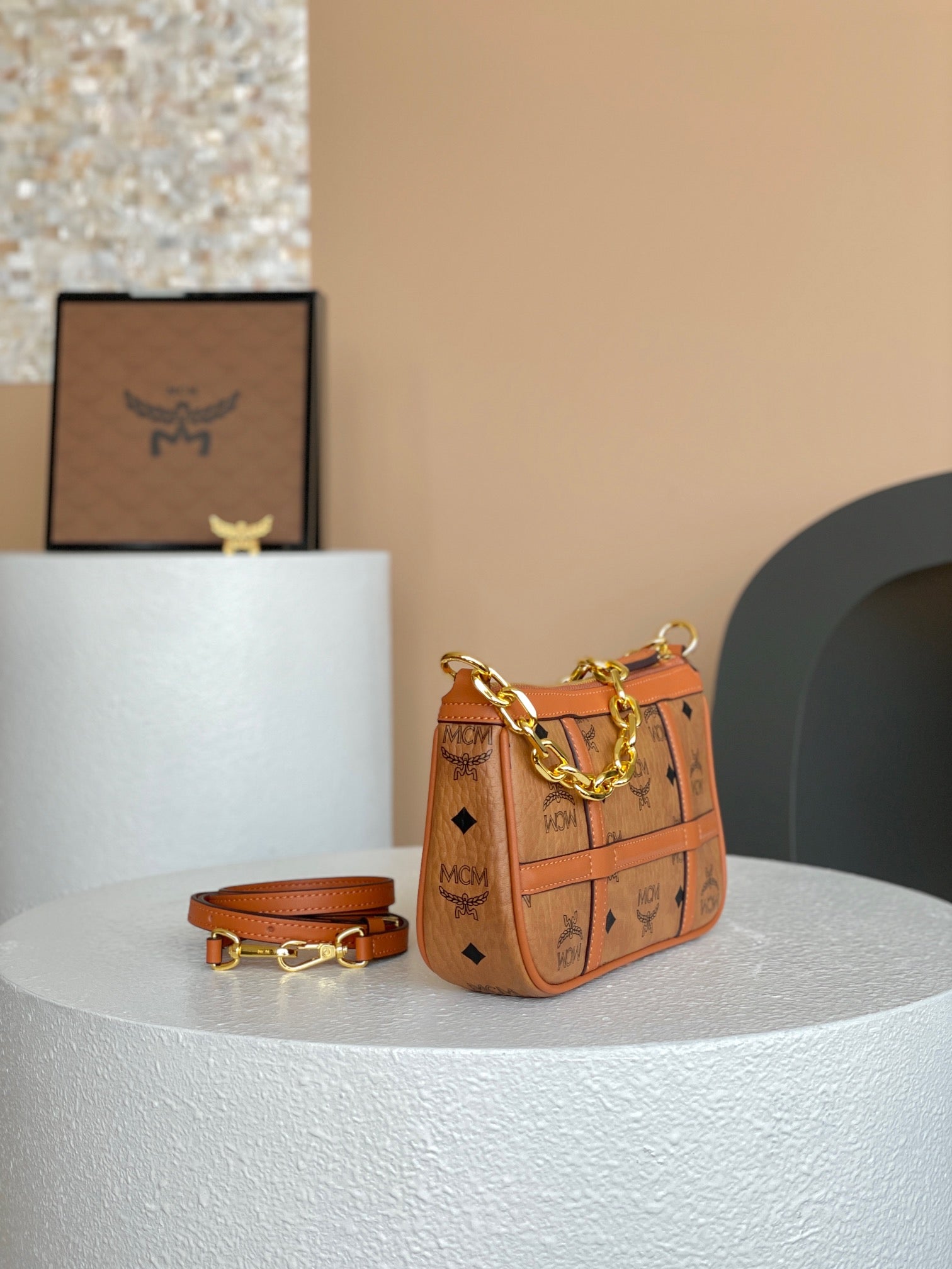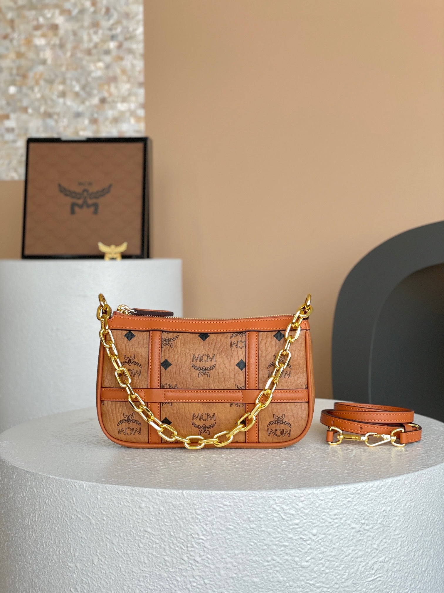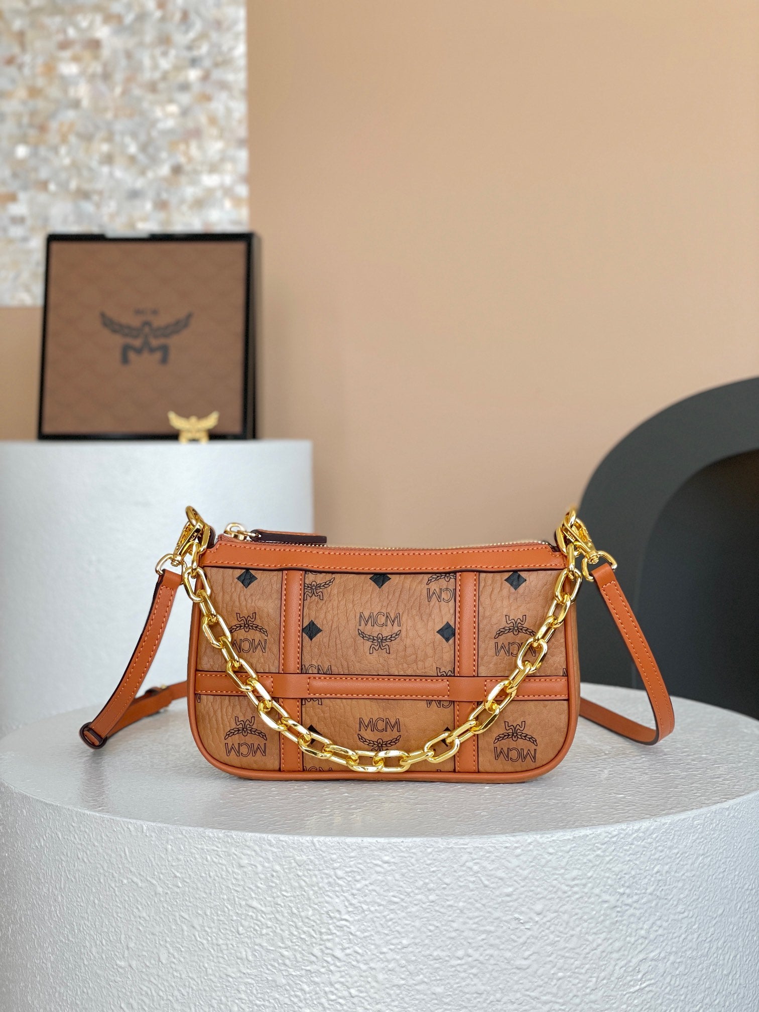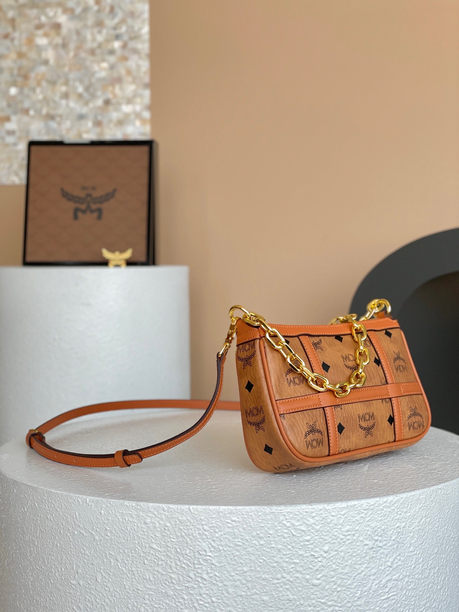 Make a statement with the MCM Aren Mini Crossbody Bag — the perfect blend of style and functionality.