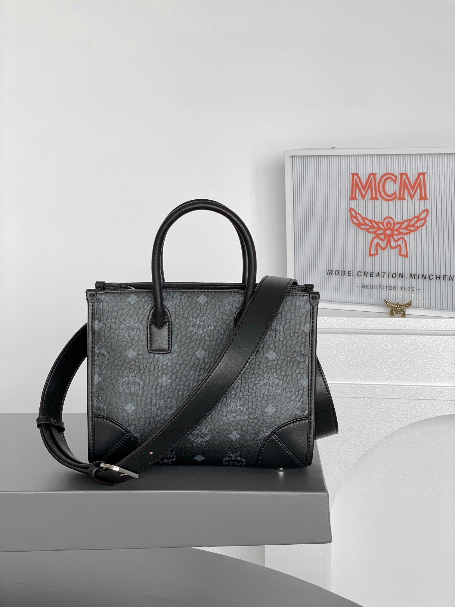 MCM München Visetos Handheld Tote Bag in Elegant Black
