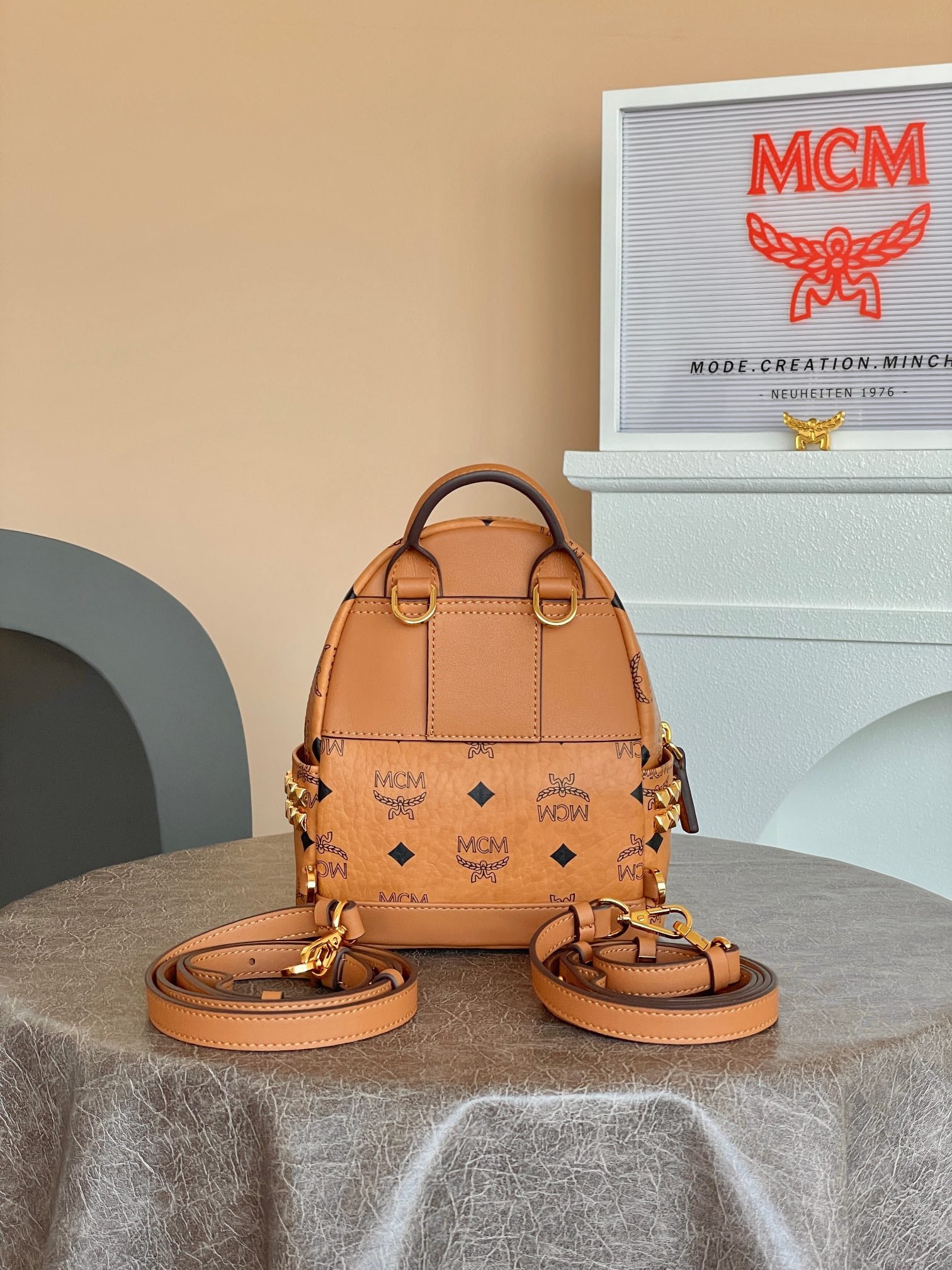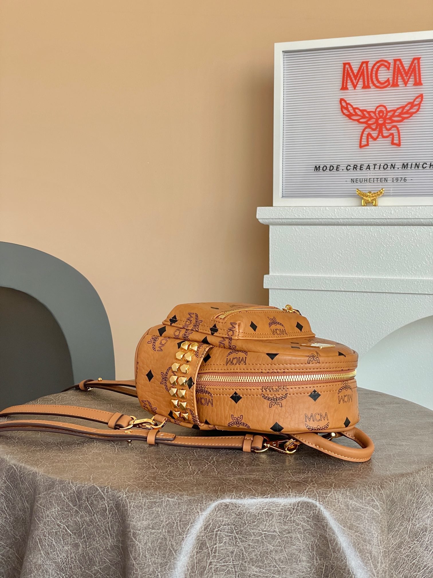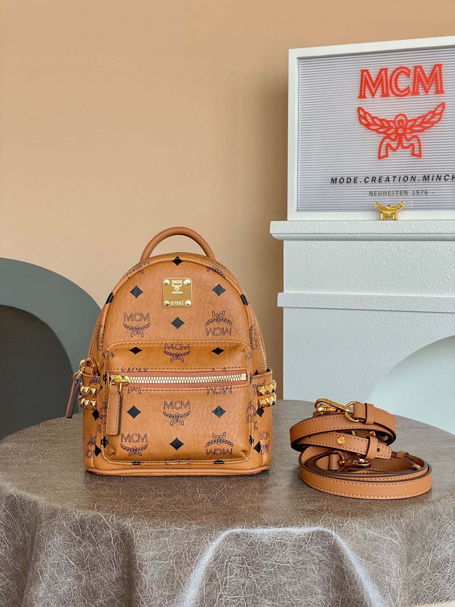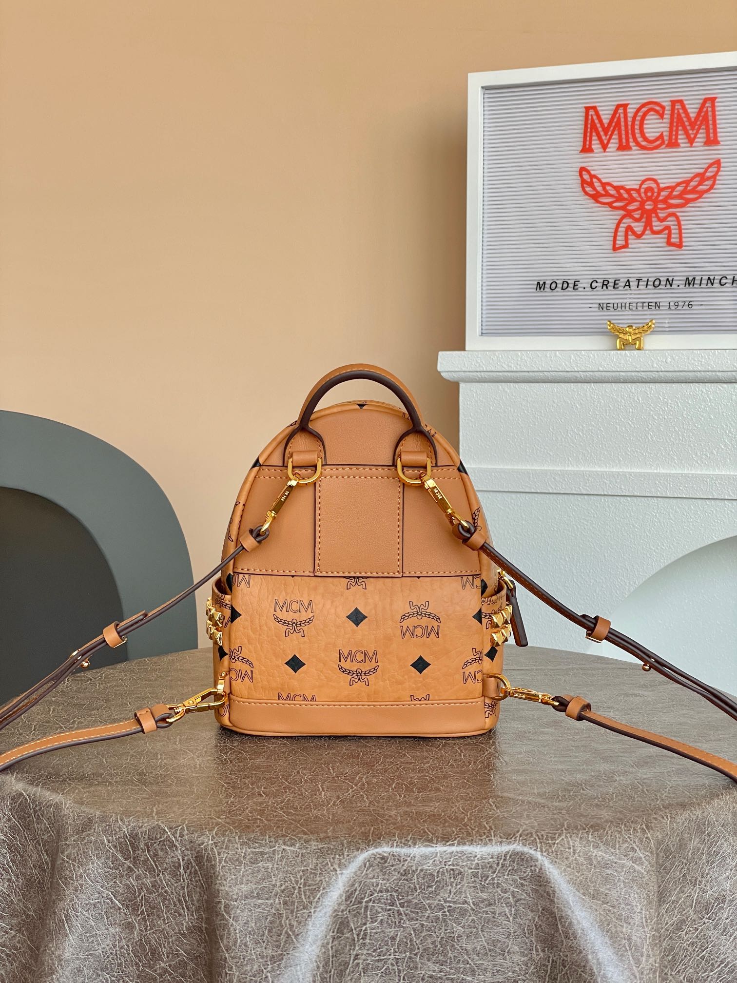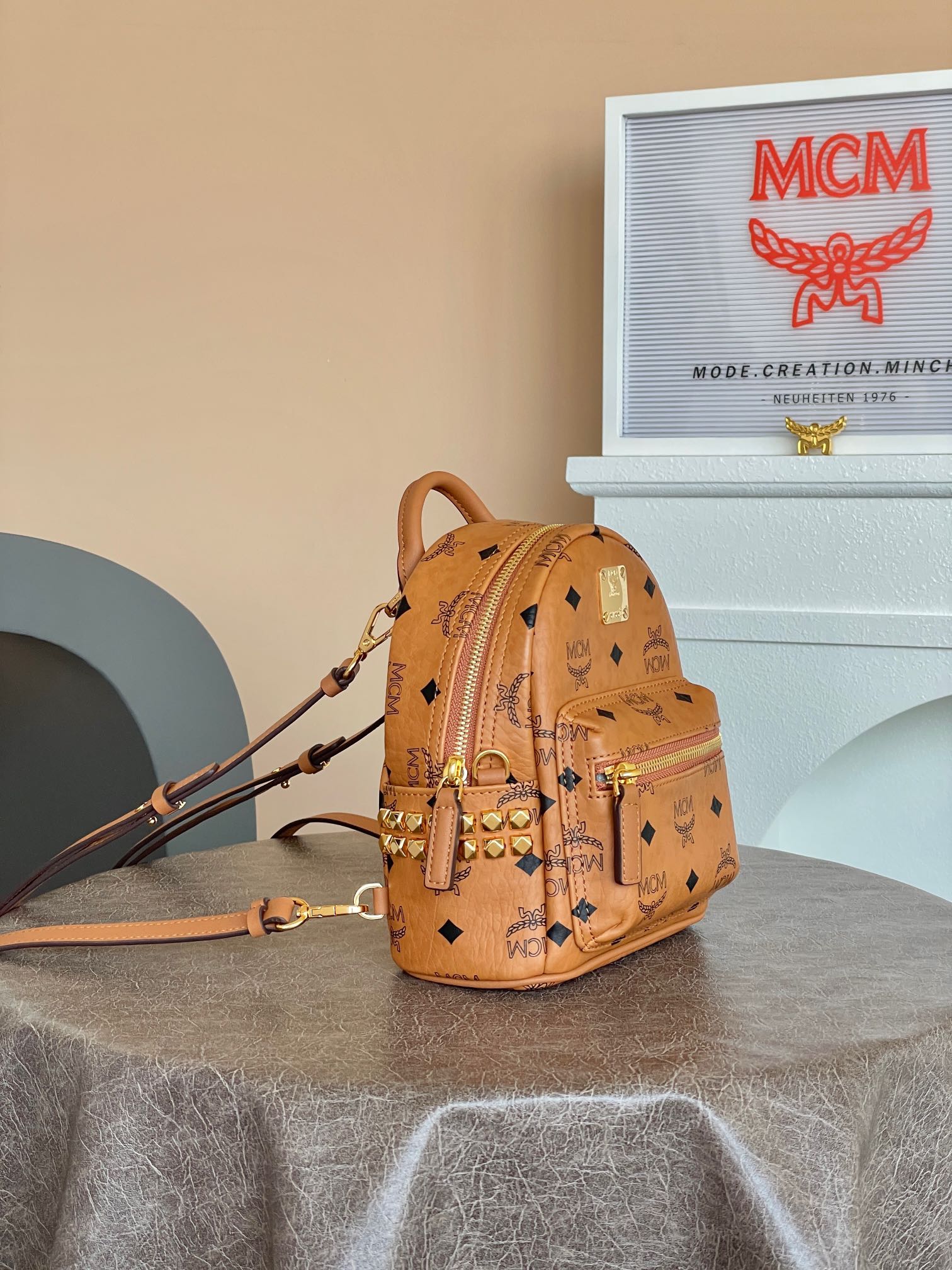 MCM Stark Visetos X-Mini Rivet Backpack - Classic Cognac