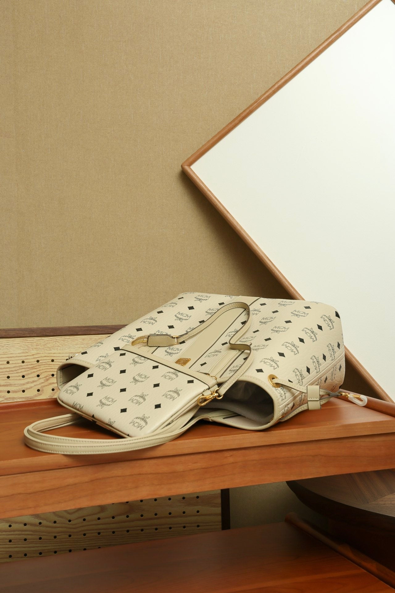 MCMLiz Visetos Double-Sided Beige Shopping Bag
