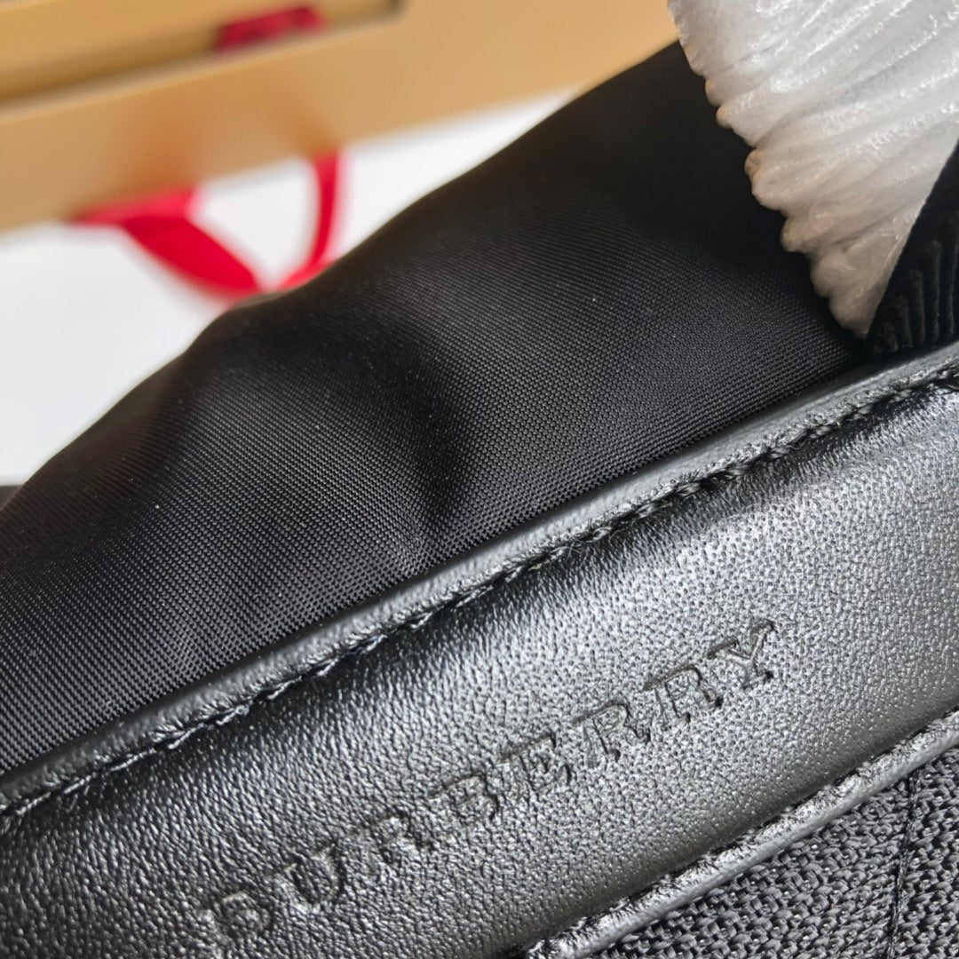 Introducing the exclusive Medium Micro-Label Military Backpack by Original B. This stylish and functional backpack combines durable, waterproof nylon with luxurious first-layer calfskin and leather accents. Featuring a top leather handle for easy carrying, the backpack showcases a distinctive Burberry letter print on the front. Inside, you'll find ample storage with one inner slip pocket and one inner zipper pocket, ensuring that your essentials are organized and secure. With dimensions of 22cm x 14cm x 33cm, this backpack is perfect for everyday use or adventures. Elevate your style with this chic and versatile accessory.