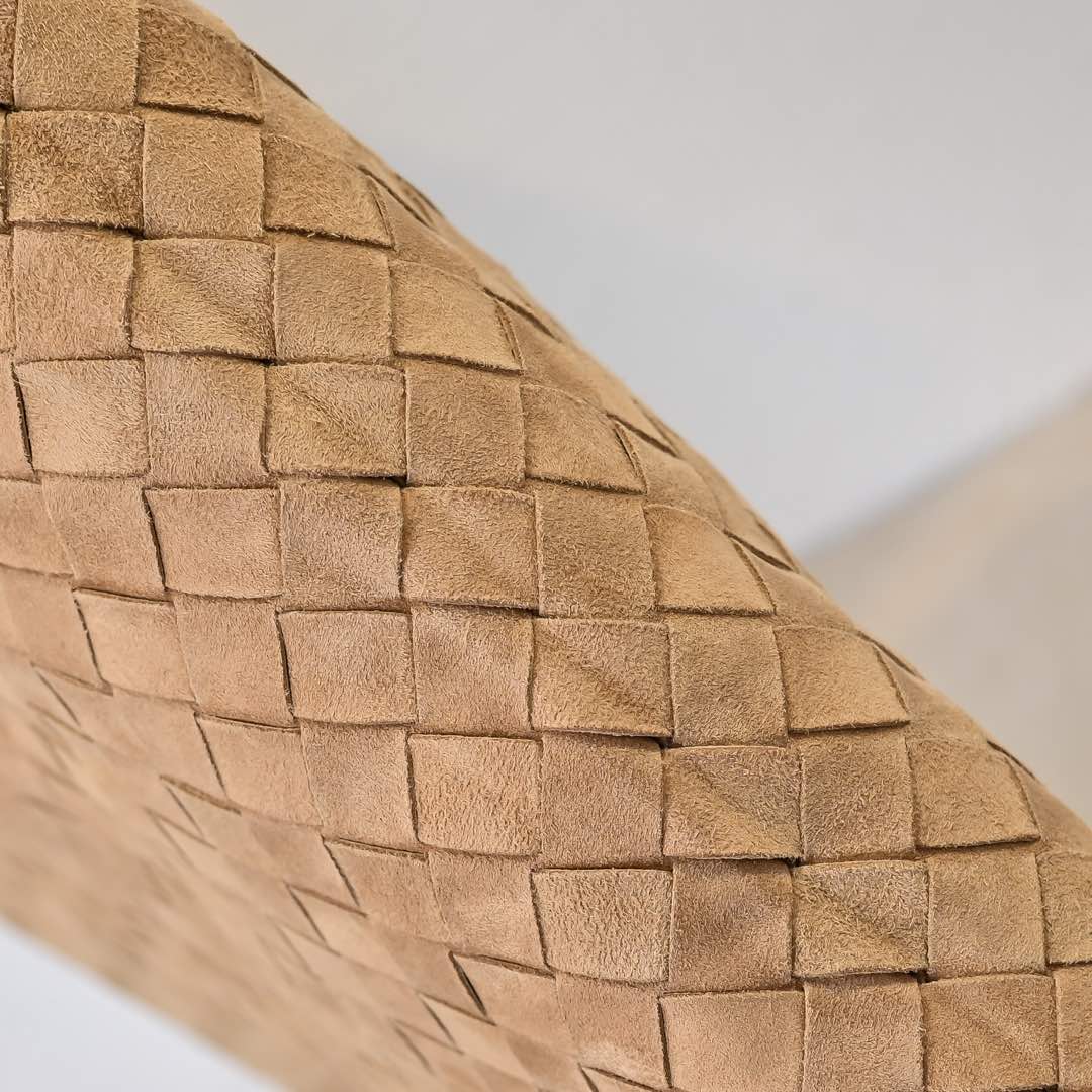 Introducing Bv's new medium-sized HOP bag, expertly crafted from a single piece of luxurious woven leather. Designed with a soft, relaxed structure, this bag embodies innovation and timeless craftsmanship, making it a stylish accessory for the modern woman.