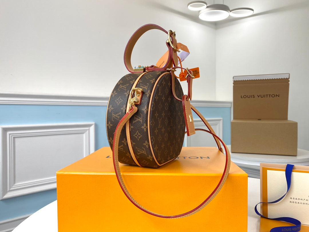 Introducing the M43514 Carry-On Pouch, a stylish reinterpretation of the classic hat box. This versatile pouch is compact yet practical, designed to fit your essentials, including an iPhone 7. Choose between the timeless Monogram canvas with elegant cowhide trimming or the trendy Reverse Monogram canvas accented with sleek black calfskin.