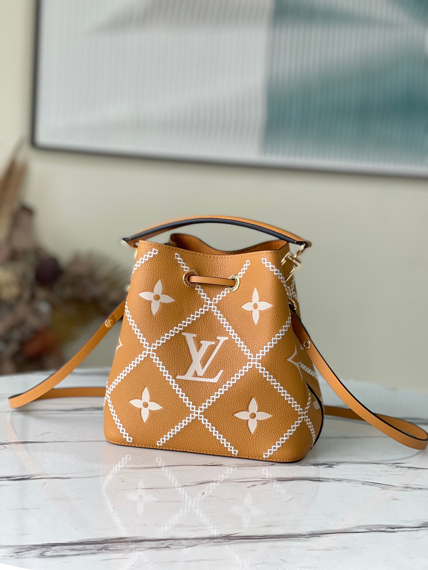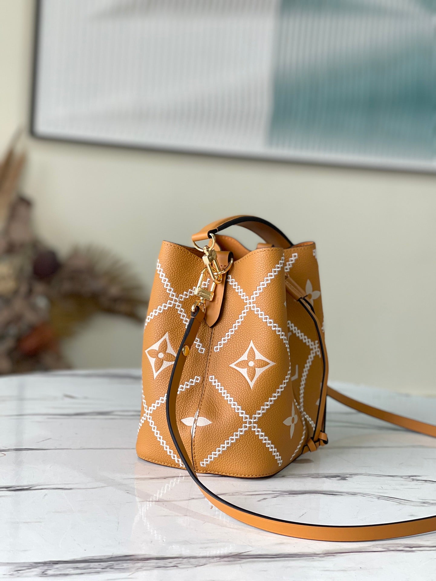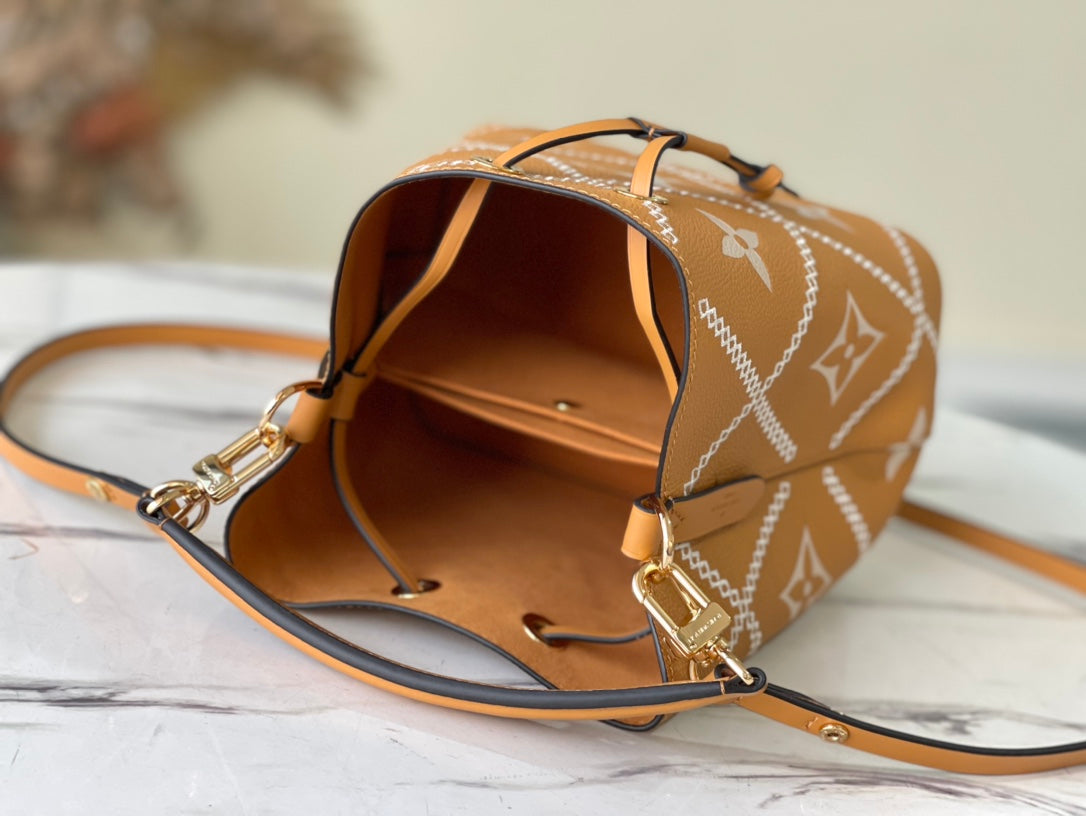 Elevate your accessory collection with the NéoNoé BB Brown Mini Bucket Bag, crafted from luxurious Monogram Empreinte leather. This chic bucket bag features a detachable top handle for versatile carrying options—perfect for hand or elbow carry. The adjustable shoulder strap allows for comfortable wear on your shoulder or across your body. With dimensions of 20 x 20 x 13 cm, this bag offers a stylish yet compact solution for your everyday needs. Upgrade your look with this timeless piece that effortlessly combines functionality and elegance.