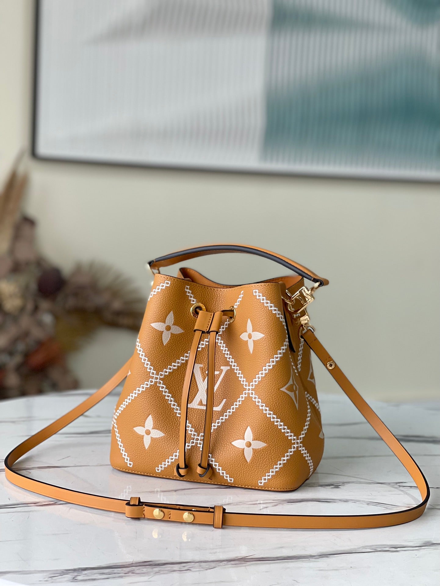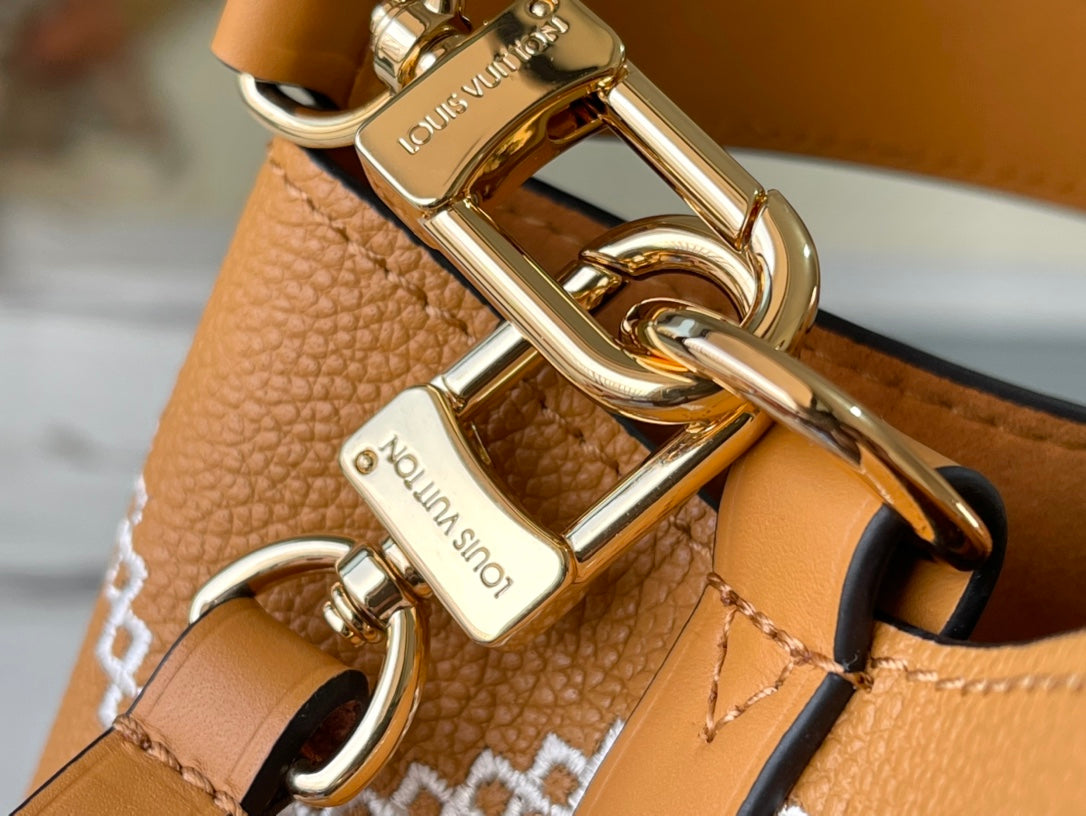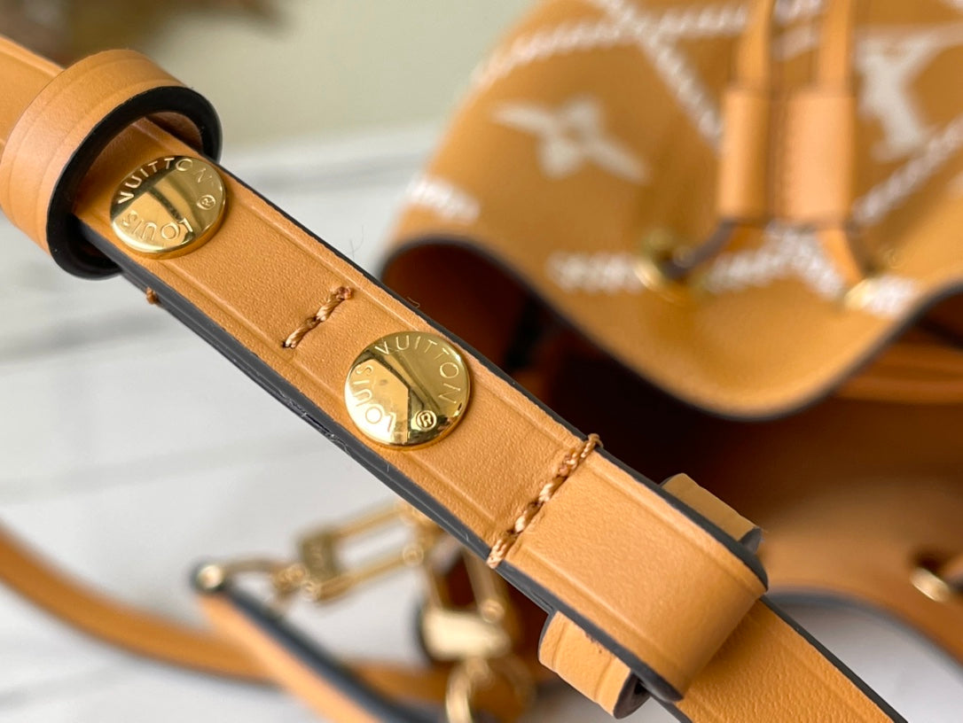 Elevate your accessory collection with the NéoNoé BB Brown Mini Bucket Bag, crafted from luxurious Monogram Empreinte leather. This chic bucket bag features a detachable top handle for versatile carrying options—perfect for hand or elbow carry. The adjustable shoulder strap allows for comfortable wear on your shoulder or across your body. With dimensions of 20 x 20 x 13 cm, this bag offers a stylish yet compact solution for your everyday needs. Upgrade your look with this timeless piece that effortlessly combines functionality and elegance.
