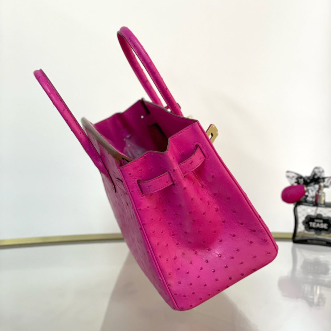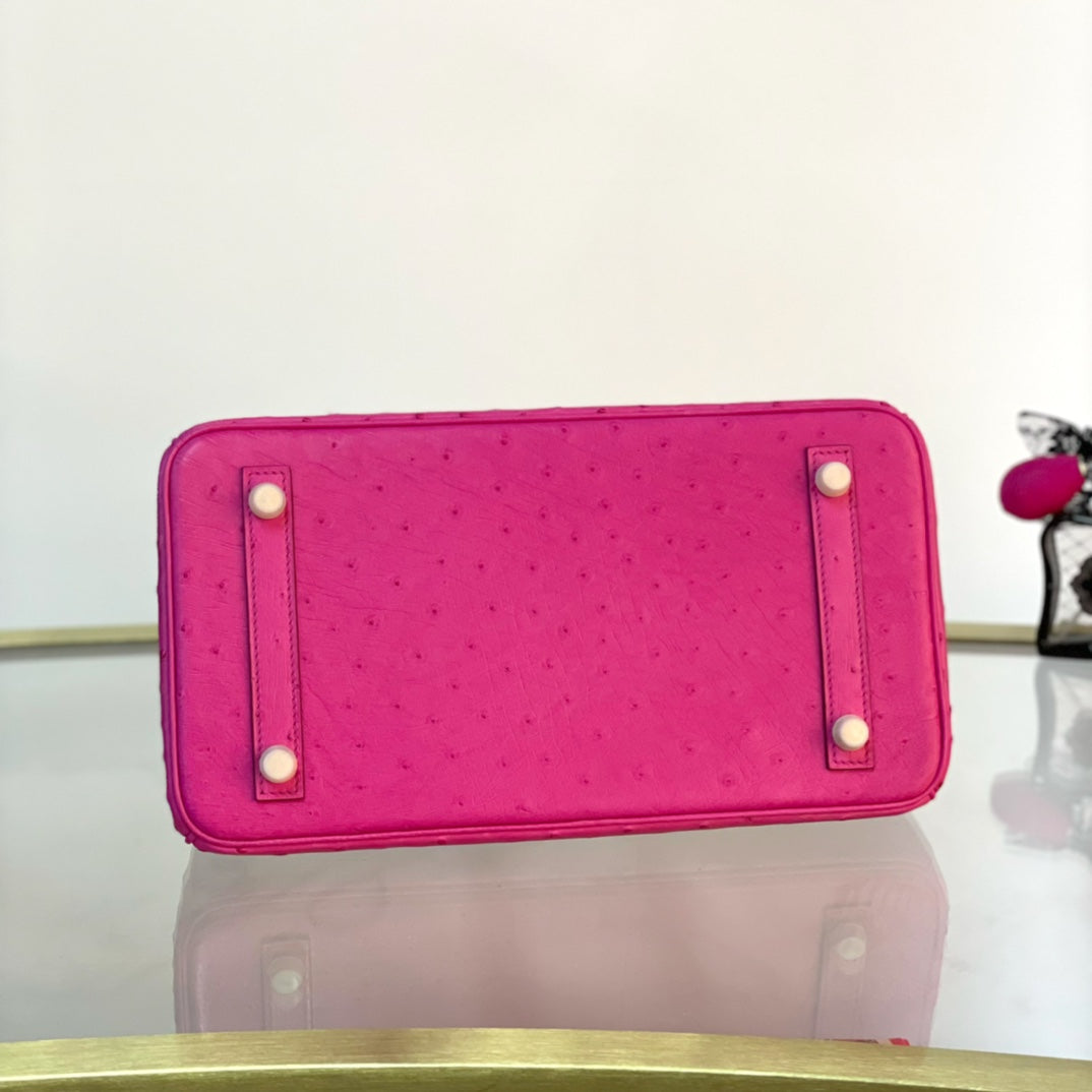 Discover the elegance of our Platinum 30 handbag, crafted from luxurious ostrich leather. This stunning accessory features a beautiful pink hue complemented by a striking gold buckle, making it the perfect addition to any outfit. Elevate your style with a blend of sophistication and unique textures. Ideal for both everyday use and special occasions, this handbag is designed for those who appreciate exquisite craftsmanship and high-end fashion. Embrace luxury with the Platinum 30 and make a statement wherever you go.