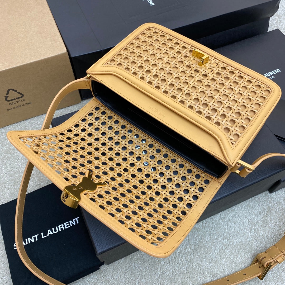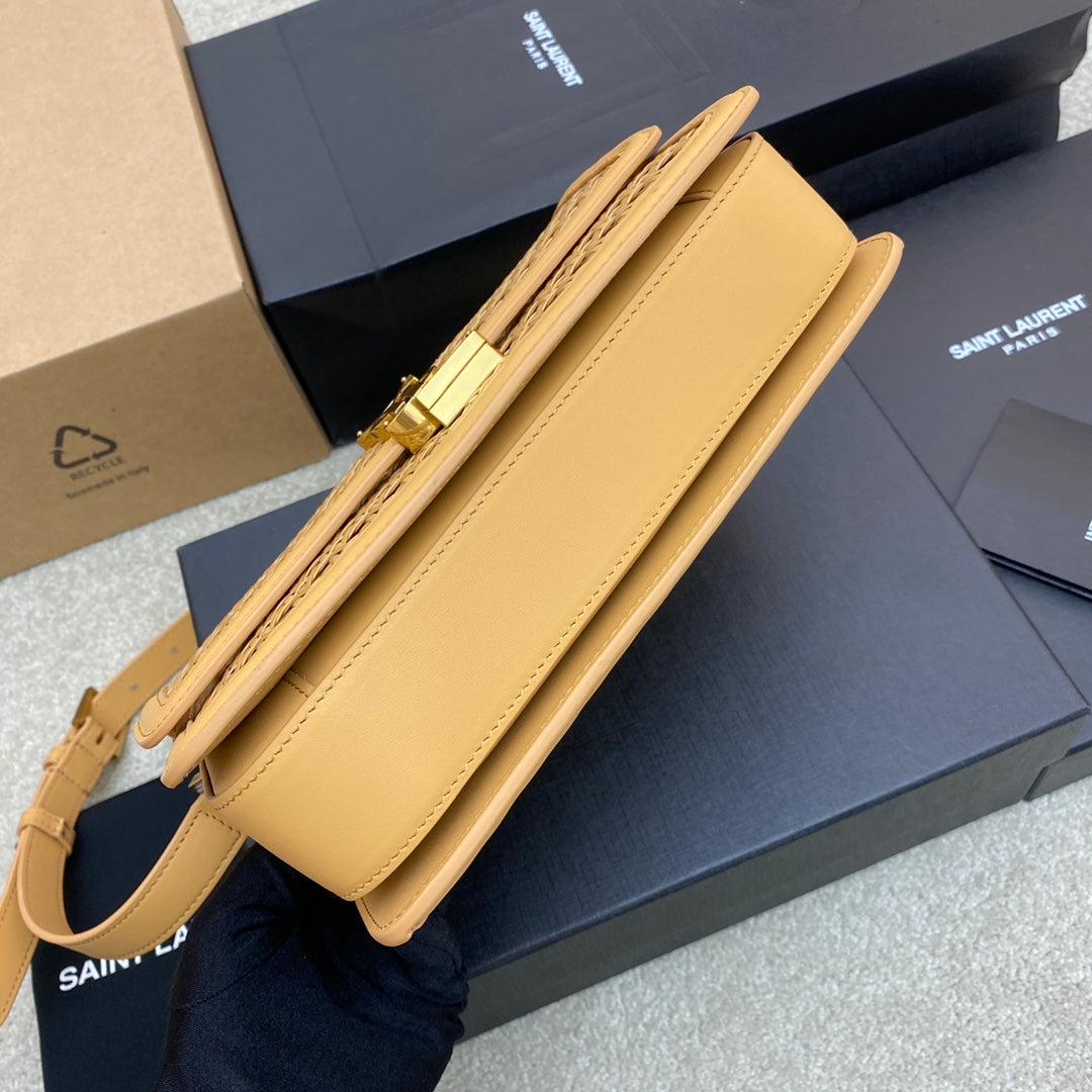 Introducing the Solferino Box in a stunning braided apricot and gold colorway. This 2023 IT BAG is a must-have that has quickly captivated fashion enthusiasts worldwide even before its official launch. Inspired by the charm of the Left Bank, its namesake comes from Rue De Solferino in Paris.