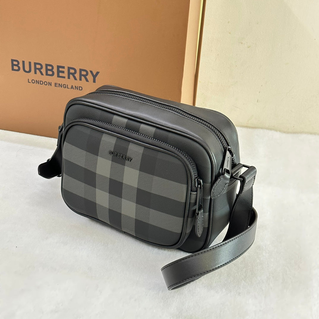 The bag is finished with a zip fly, hand-painted lacquered edges, and glossy metal hardware, ensuring a polished look. The 3D Burberry lettering logo on the front adds a stylish touch to this versatile piece. Perfect for any occasion, this bag combines luxury and functionality in one stunning design.