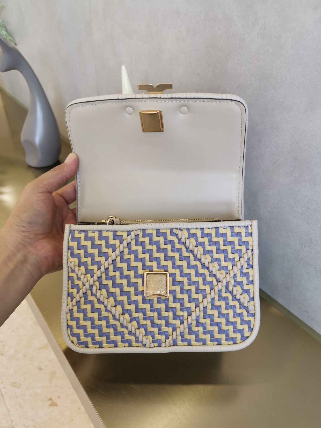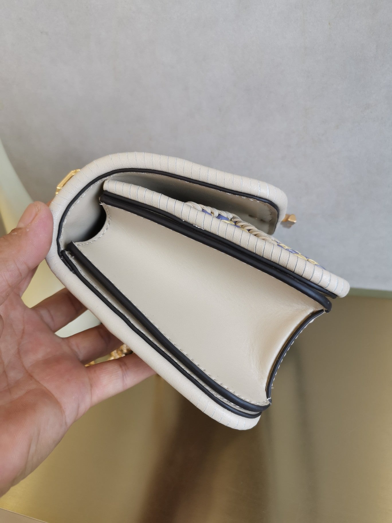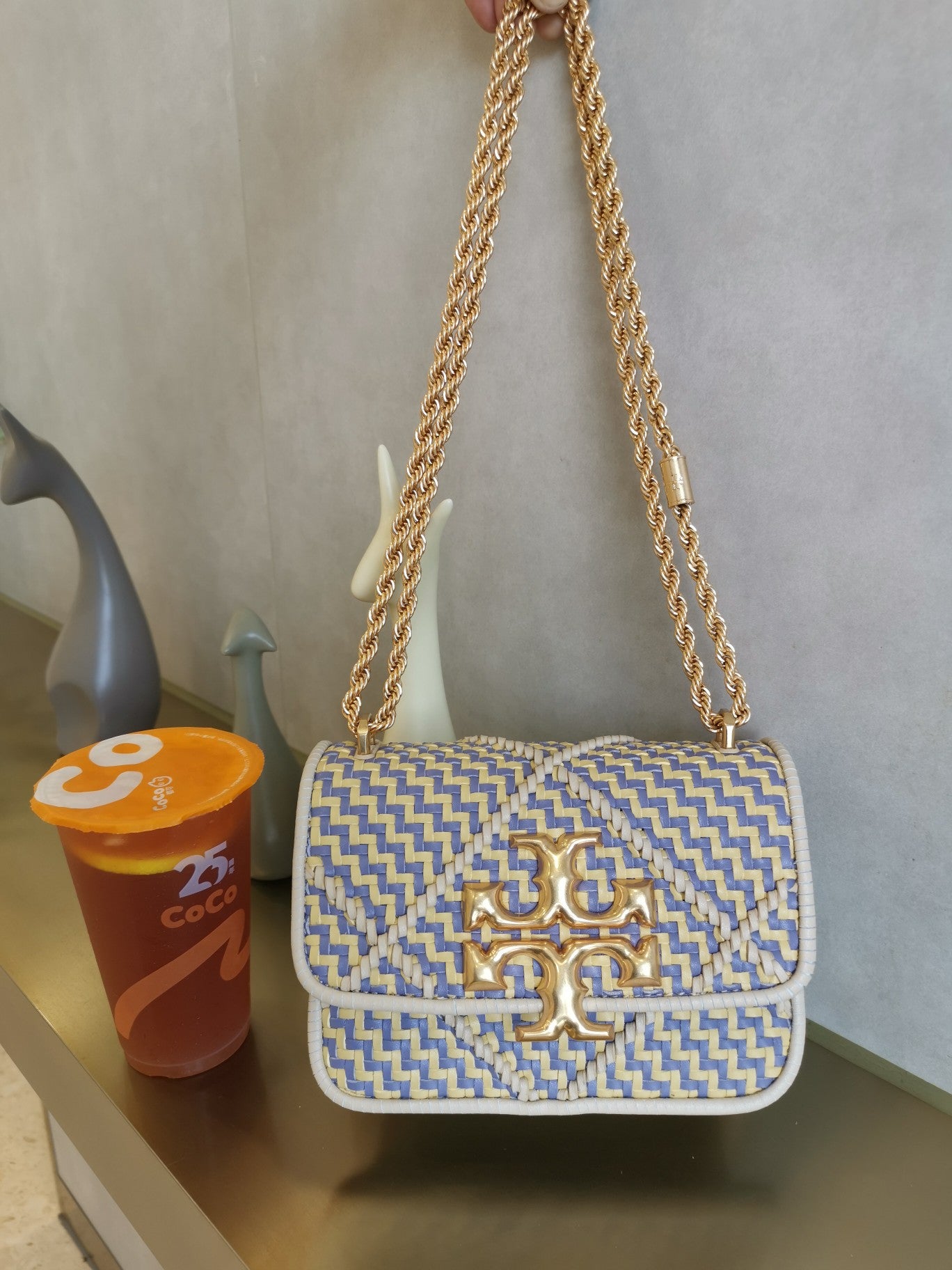 Elevate your accessory collection with the Tory Burch Eleanor Accordion Bag, crafted from premium Napa cowhide. This stylish piece features a sleek woven design with a durable hardware chain, offering both elegance and functionality. It includes a secure zipper pocket and an internal slip pocket for organized storage. With dimensions of 19 x 13.5 x 6.5 inches, this bag is the perfect size for everyday use or special occasions. Make a statement while keeping your essentials close at hand with this sophisticated accessory.