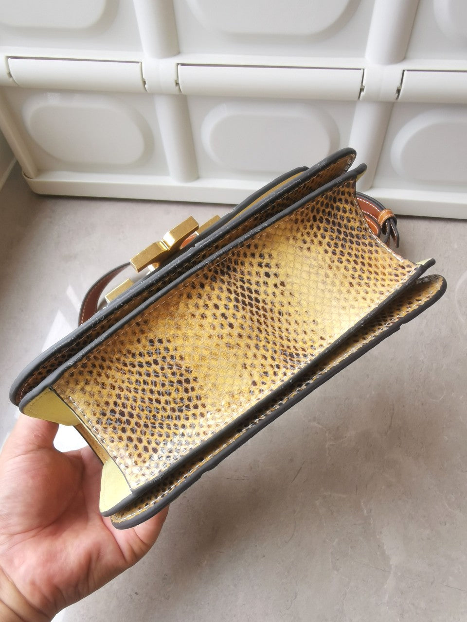 Inside, you’ll find an organized space with a slip pocket, a zip pocket, and an open compartment, keeping your essentials easily accessible. Elevate your wardrobe with this chic and functional accessory.